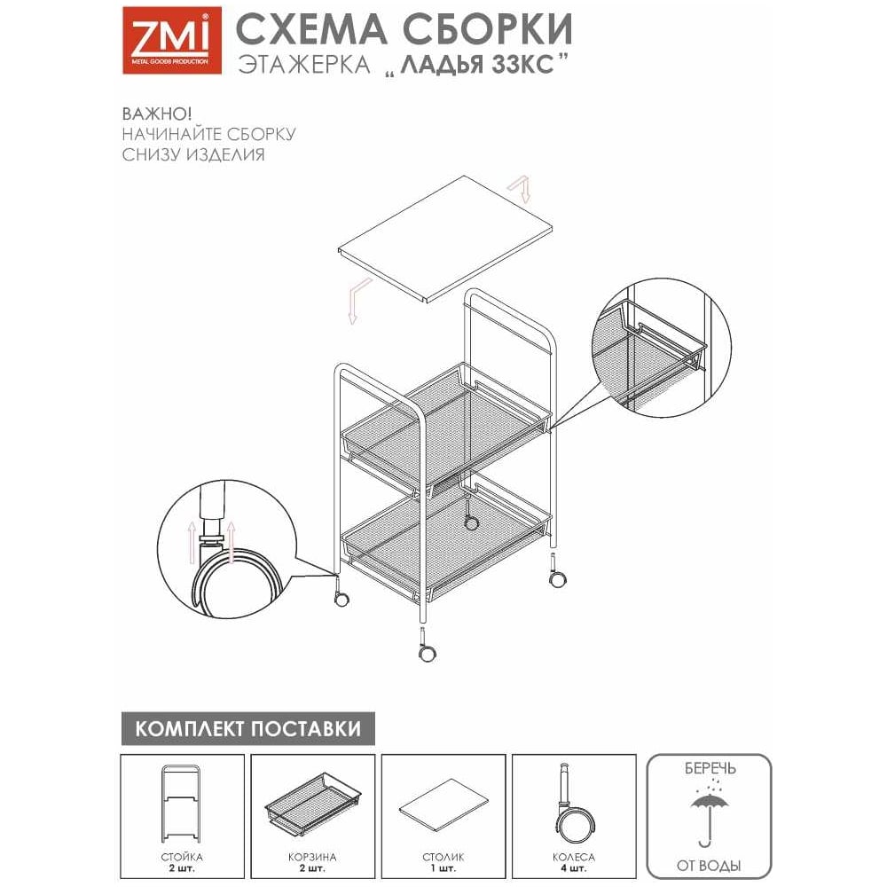 Этажерка / Стеллаж для хранения ЗМИ Ладья 33КС / 3 полки / с колёсами / цвет белый Э 356 Б Э 356 Б
