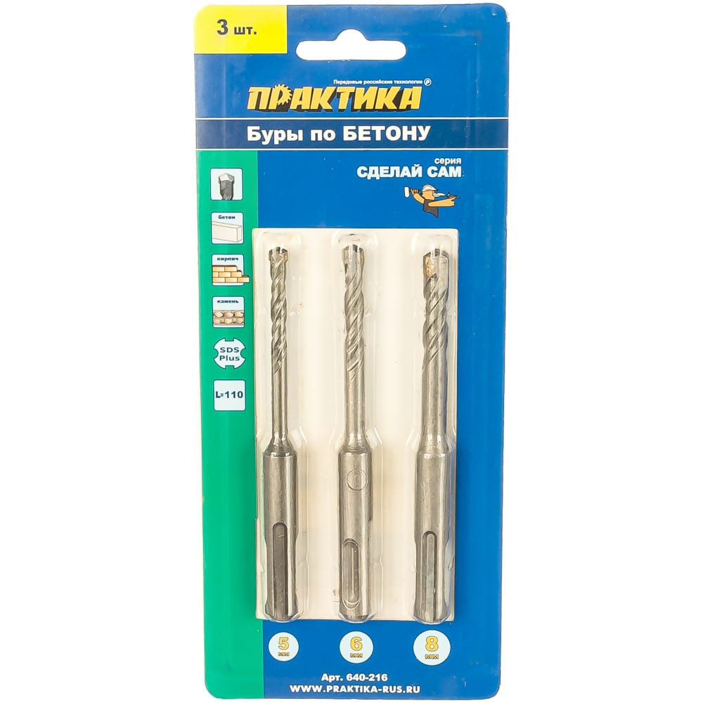 ПРАКТИКА Набор буров SDS plus Сделай сам 3 шт, 5,6,8x110 мм, блистер 640-216