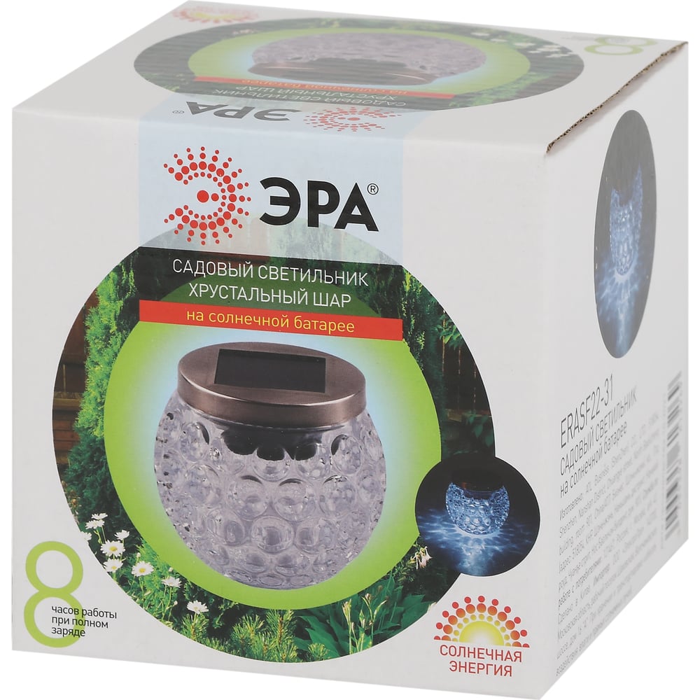 Садовый светильник ЭРА ERASF22-31 Хрустальный шар, на солнечной батарее, 10 см, Б0053378