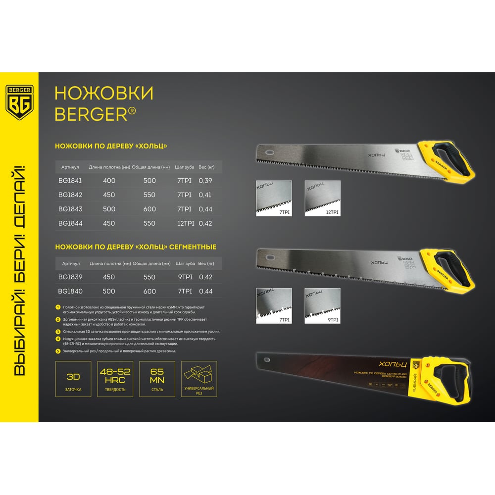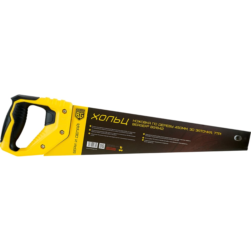 Ножовка по дереву Berger BG 450мм, 3D заточка, 7TPI,BG1842