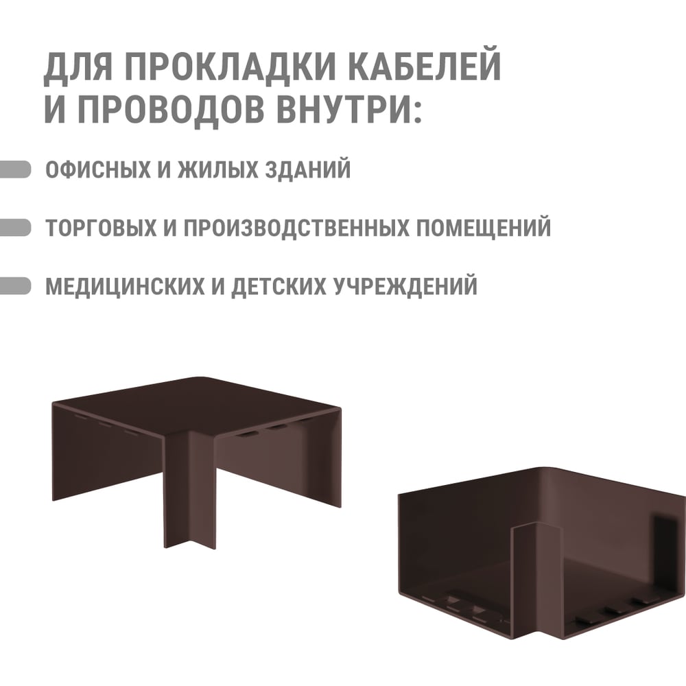 Высота 60 мм Длина 200 мм Материал ПВХ Ширина 200 мм Цвет бук Тип поворот 90 град Вес нетто 0.065 кг Степень защиты IP40 Количество в упаковке 2 шт Температура эксплуатации от -40 до +70 °С Цвет RAL 8022 Палитра коричневый Температура монтажа от -15 до +60 °С Климатическое исполнение УХЛ1 Размер 100х60 мм Количество вводов 2 шт Высота кабель-канала 60 мм Ширина кабель-канала 100 мм Количество отсеков 1 шт