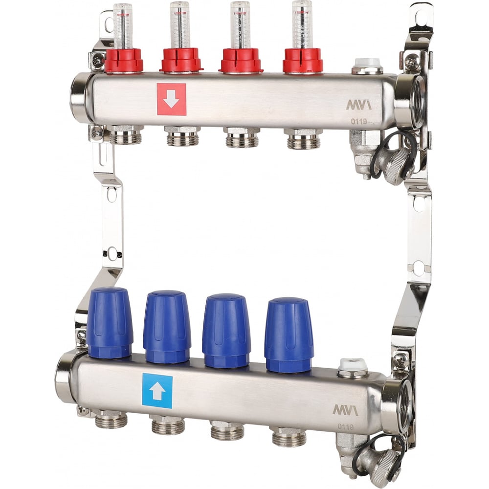 MVI Коллектор из нержавеющей стали в сборе с расходомерами, дренажным краном и воздухоотводчиком MS.704.06