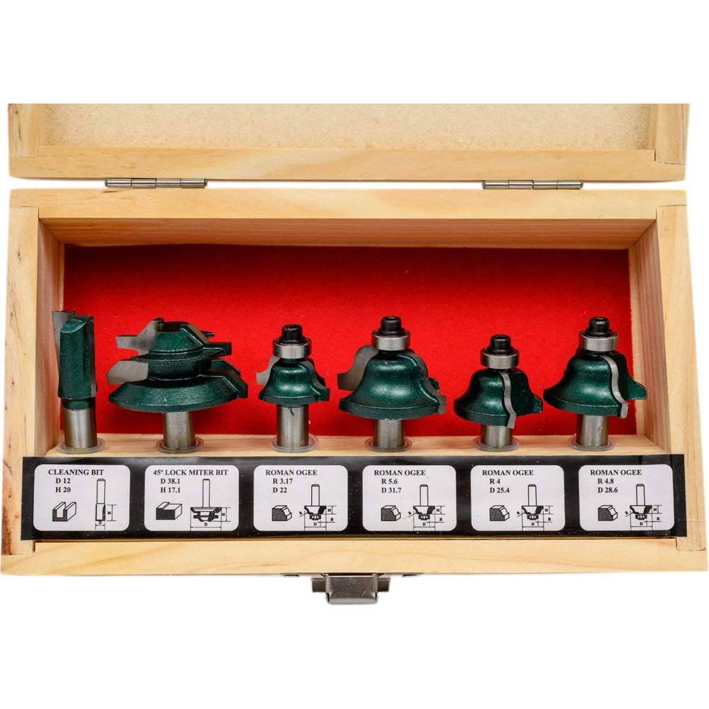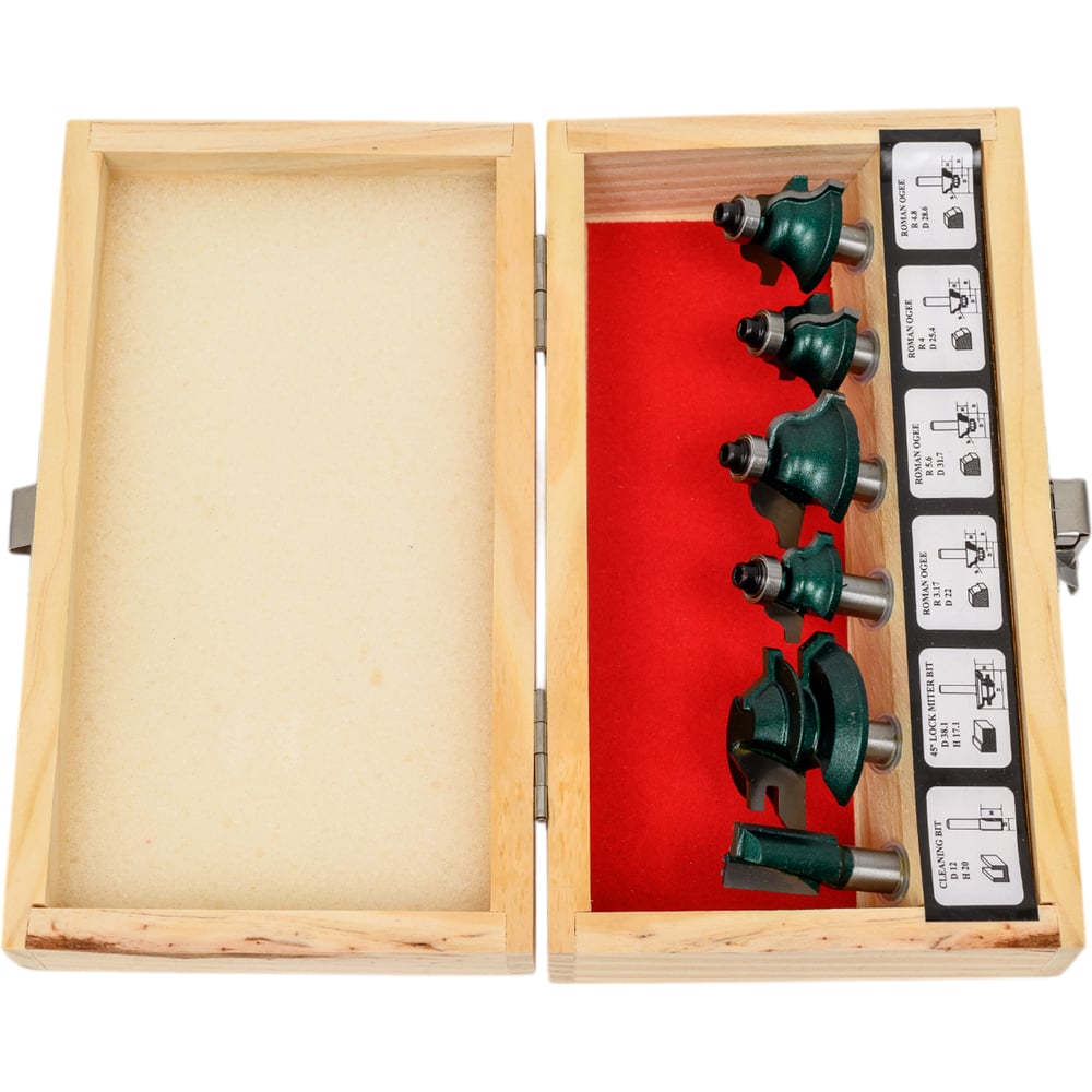 Фрезы по дереву кромочные (6 шт; хвостовик 8 мм) в деревянном боксе FIT 36572