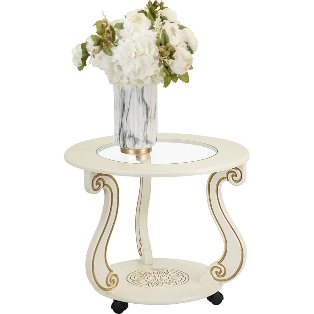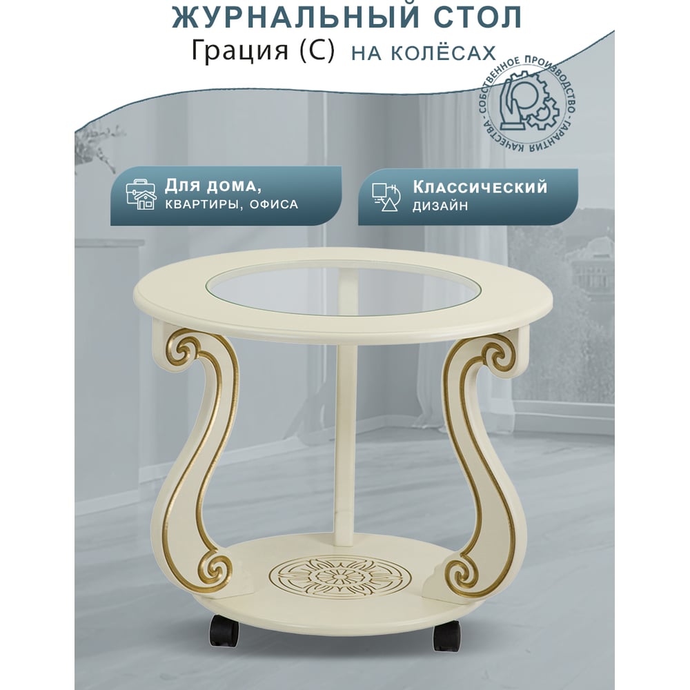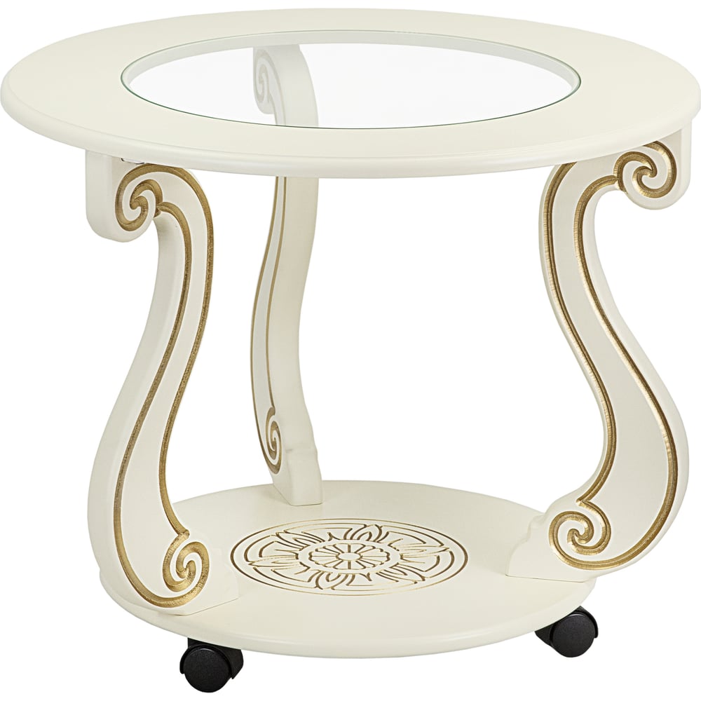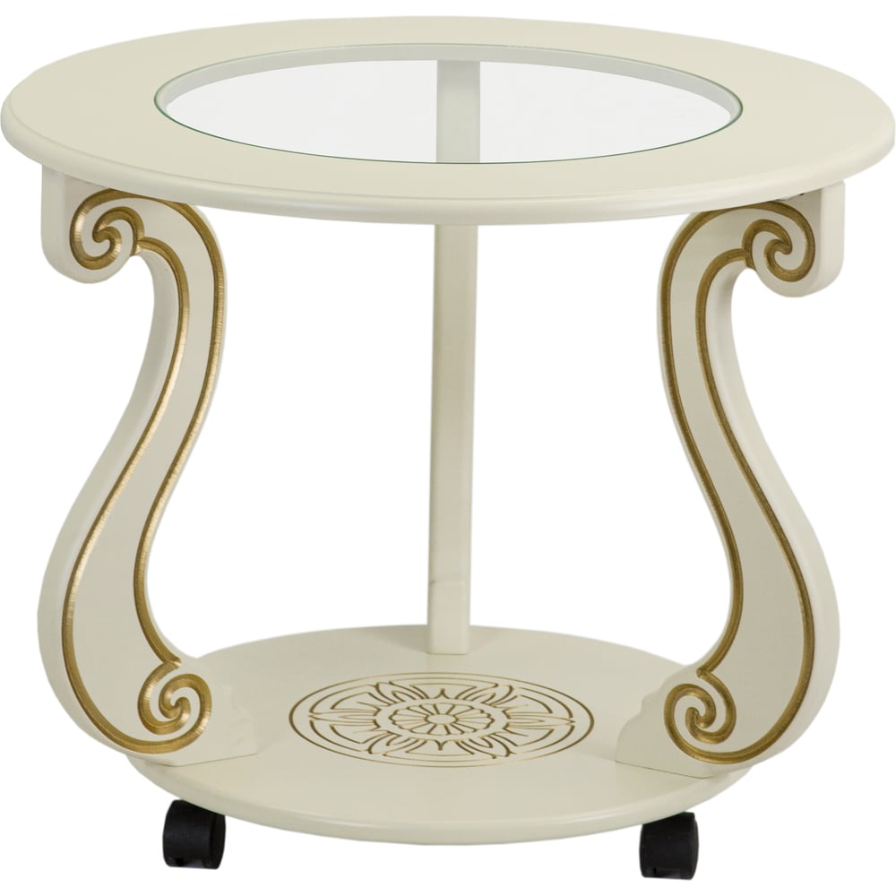 Журнальный стол Мебелик Грация (С) на колесах, слоновая кость, золото 7455