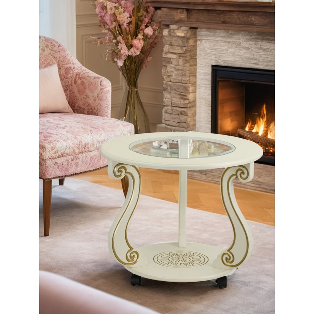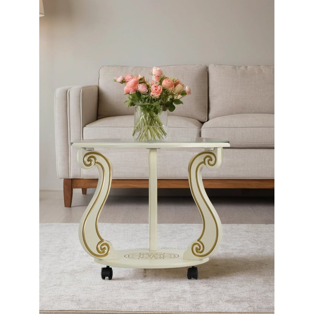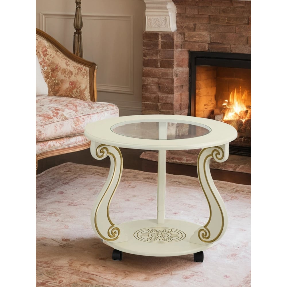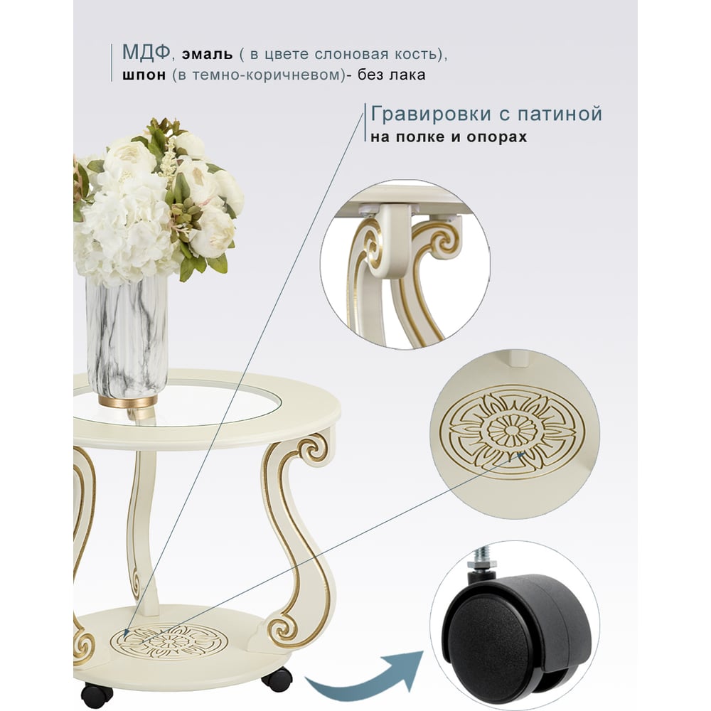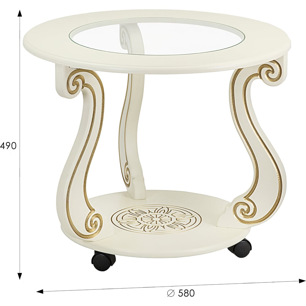 Журнальный стол Мебелик Грация (С) на колесах, слоновая кость, золото 7455