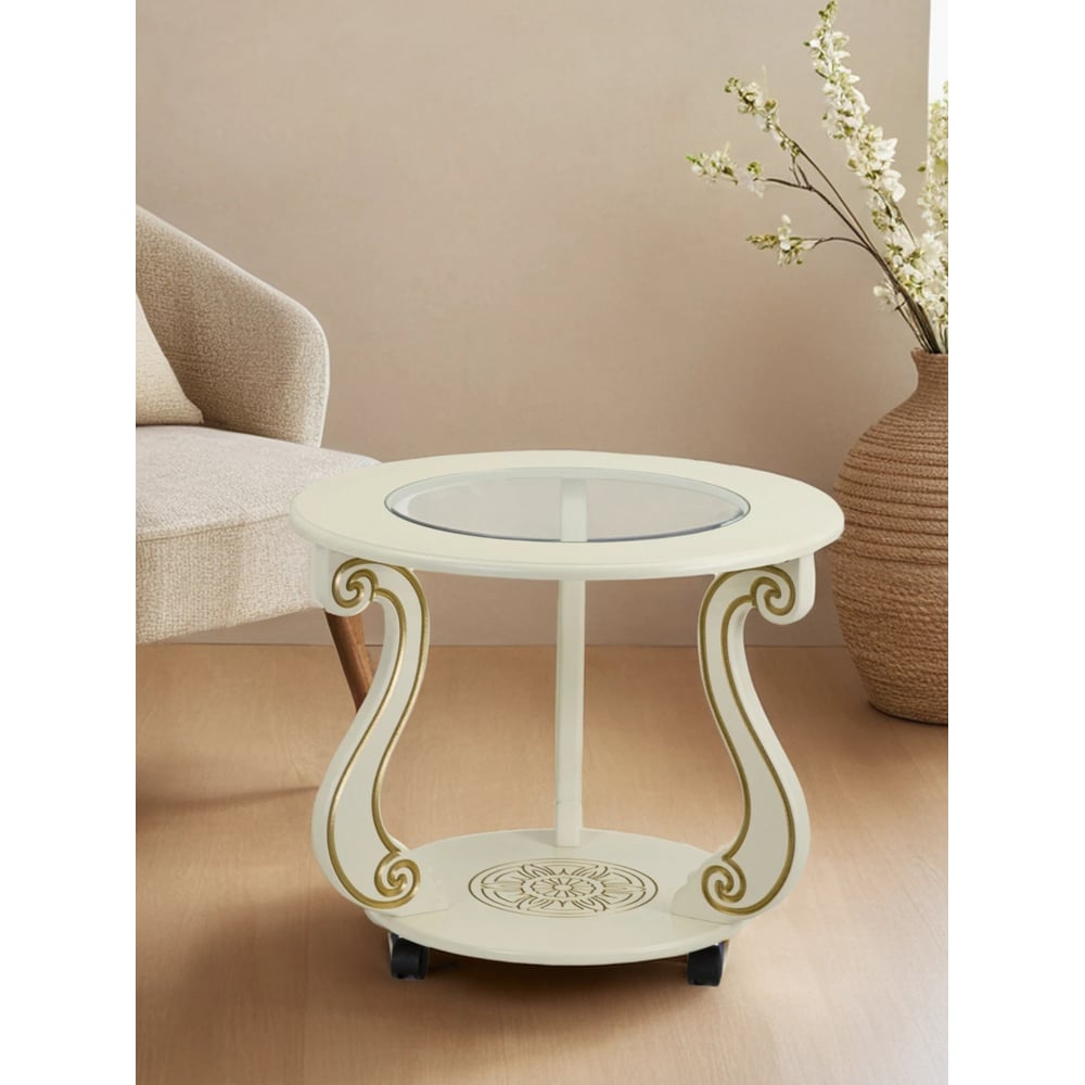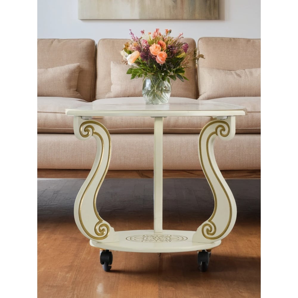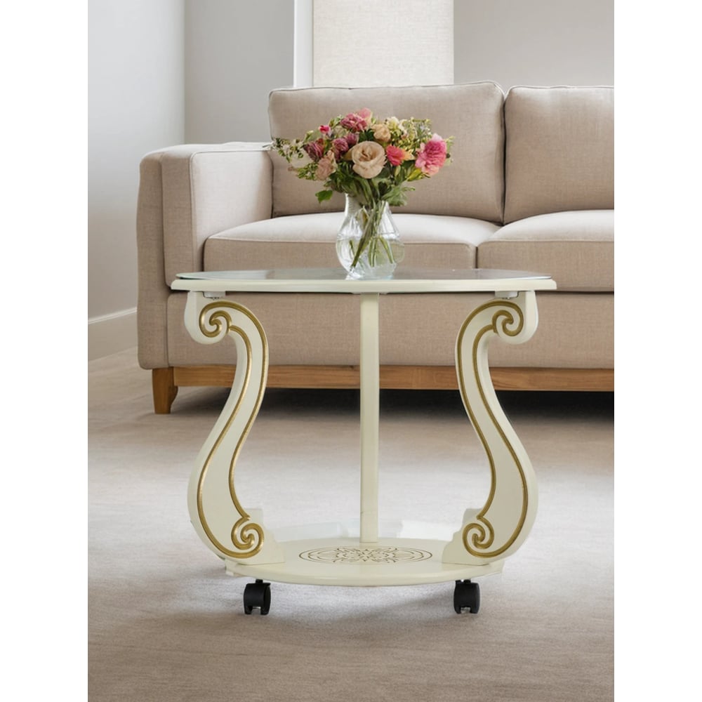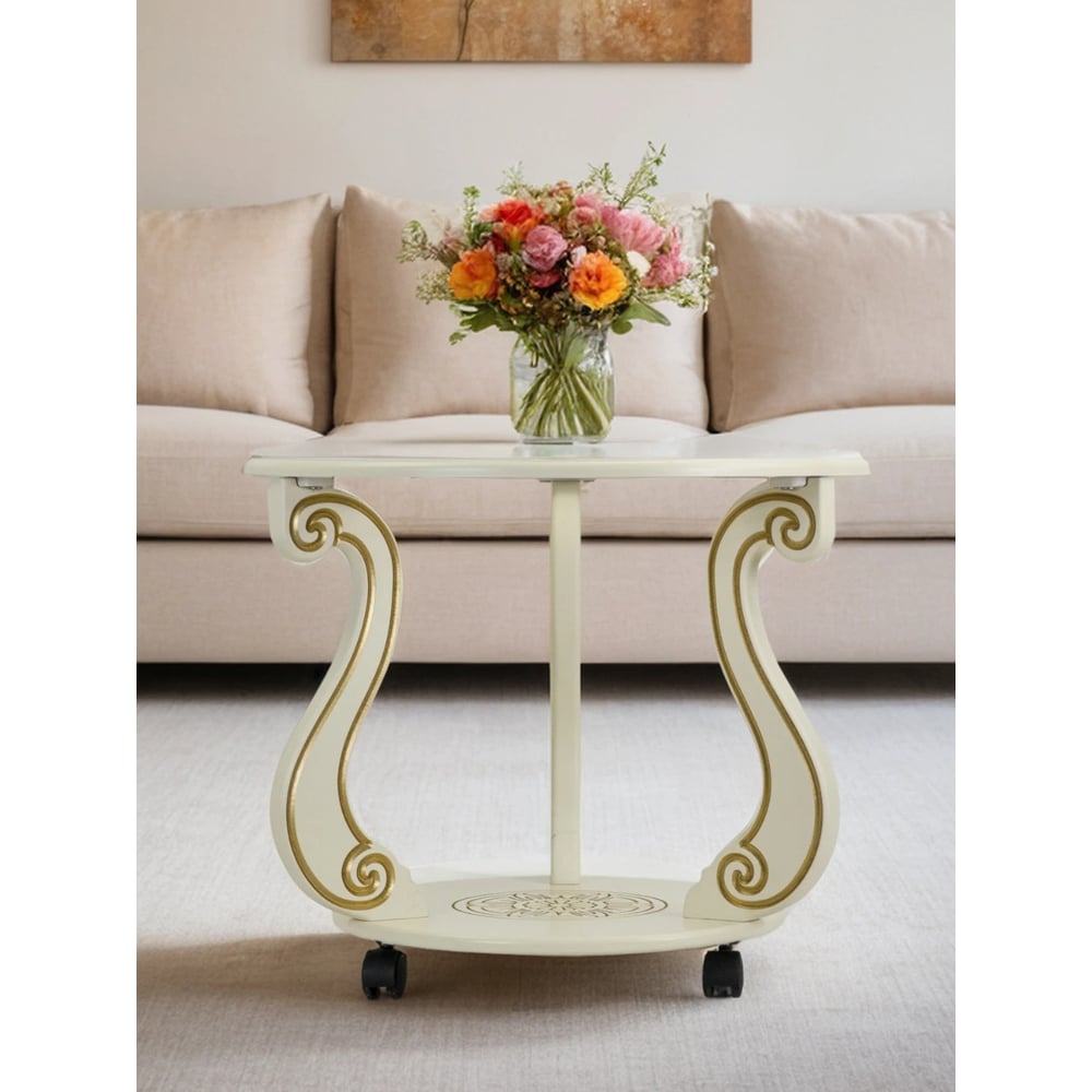 Журнальный стол Мебелик Грация (С) на колесах, слоновая кость, золото 7455