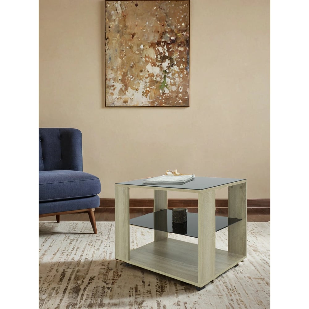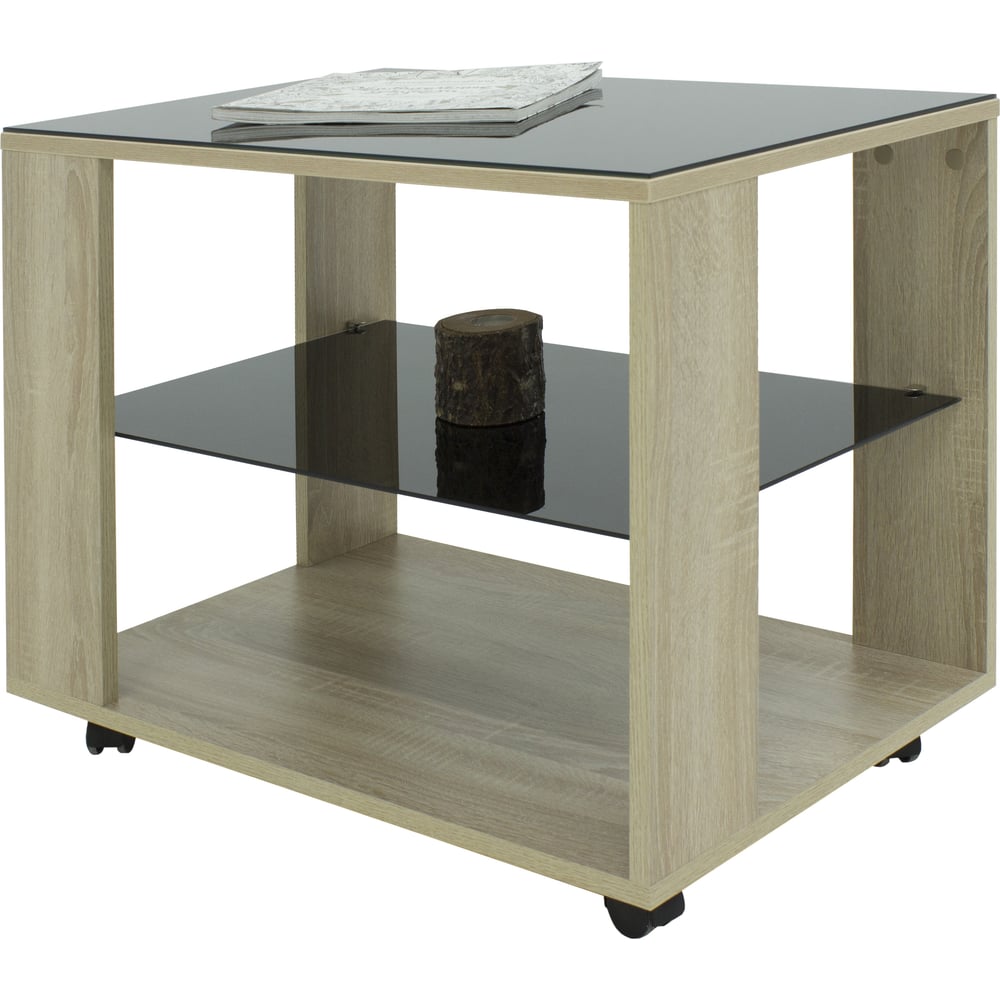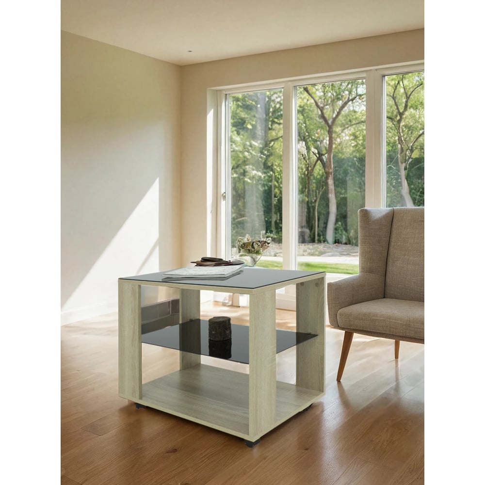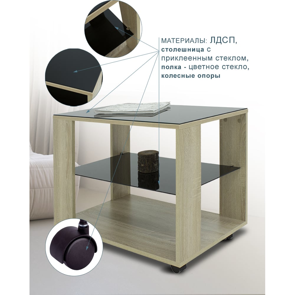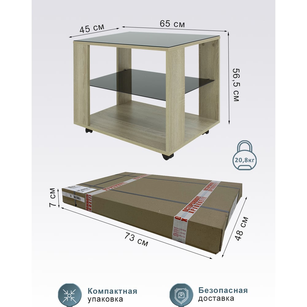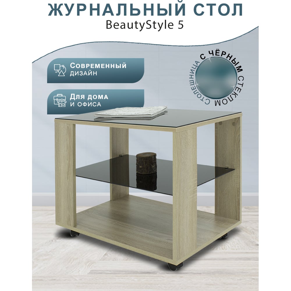 Журнальный стол Мебелик BeautyStyle 5 сонома, стекло черное 7624