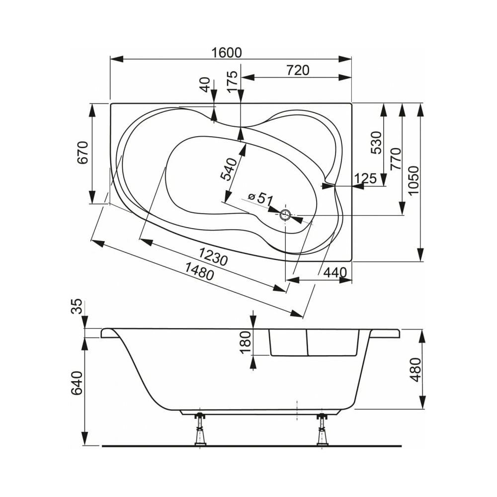 | Диаметр выпуска (отверстия для слива) | 51 мм |