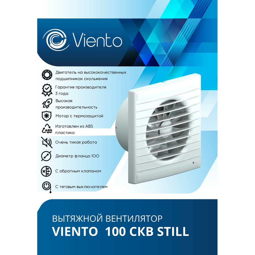 Осевой вытяжной вентилятор ВИЕНТО с обратным клапаном тяговый выключатель 100СКВ STILL