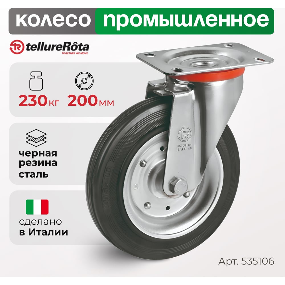 Колесо с вращающейся опорой и пластиной крепления (200 мм; 230 кг) Tellure rota 535106