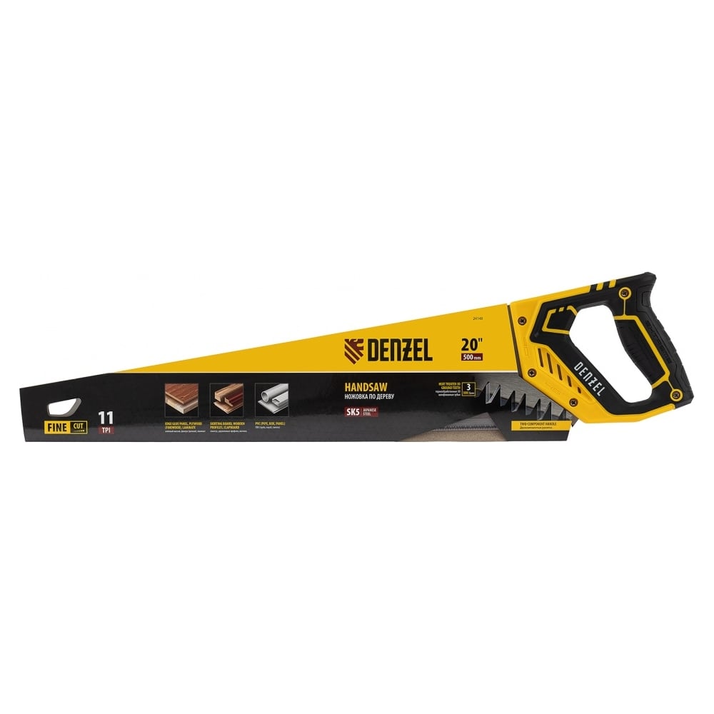 Ножовка по дереву Denzel, 500 мм, 11 TPI, зуб 3D, двухкомпонентная рукоятка 24148
