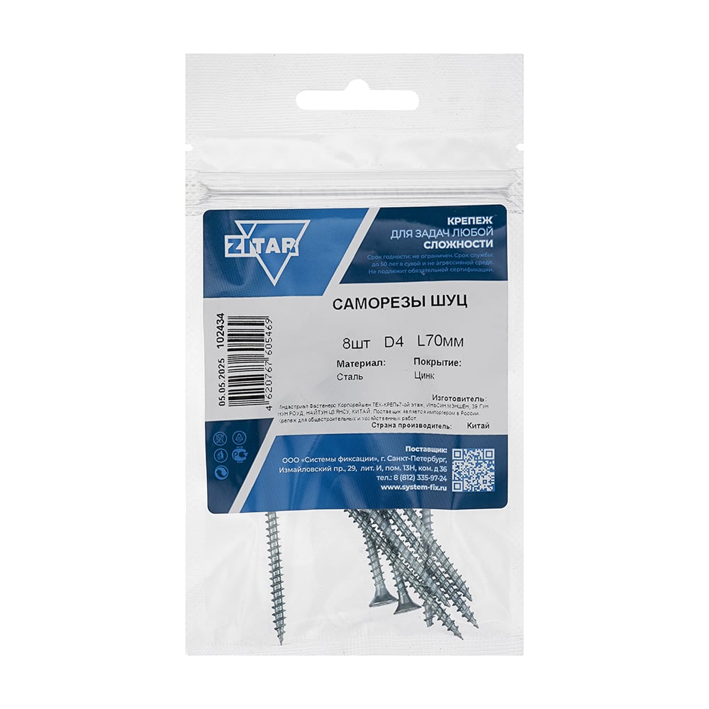 Саморез ШУц с потайной головкой 4,0x70 мм, 8 шт., пакет Zitar 102434