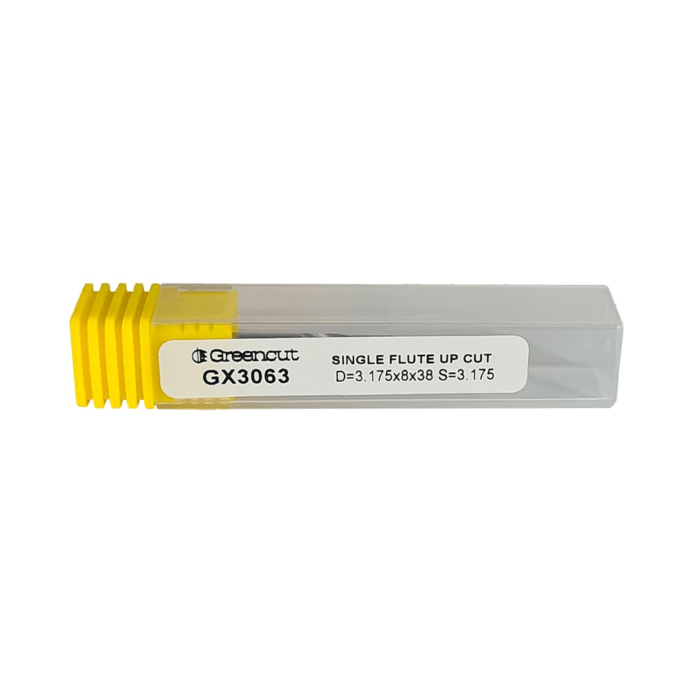Фреза спиральная однозаходная верхний рез для ЧПУ (3.175x8x38 мм; S=3.175 мм; Z1) Greencut GX3063