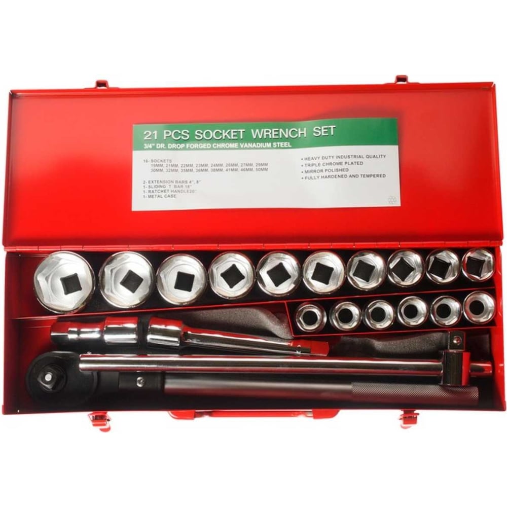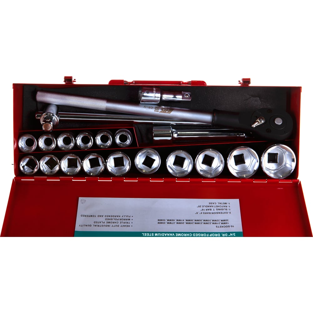 Головки 3/4": 19, 21, 22, 23, 24, 26, 27, 29, 30, 32, 35, 36, 38, 41, 46, 50 мм – 16 шт;