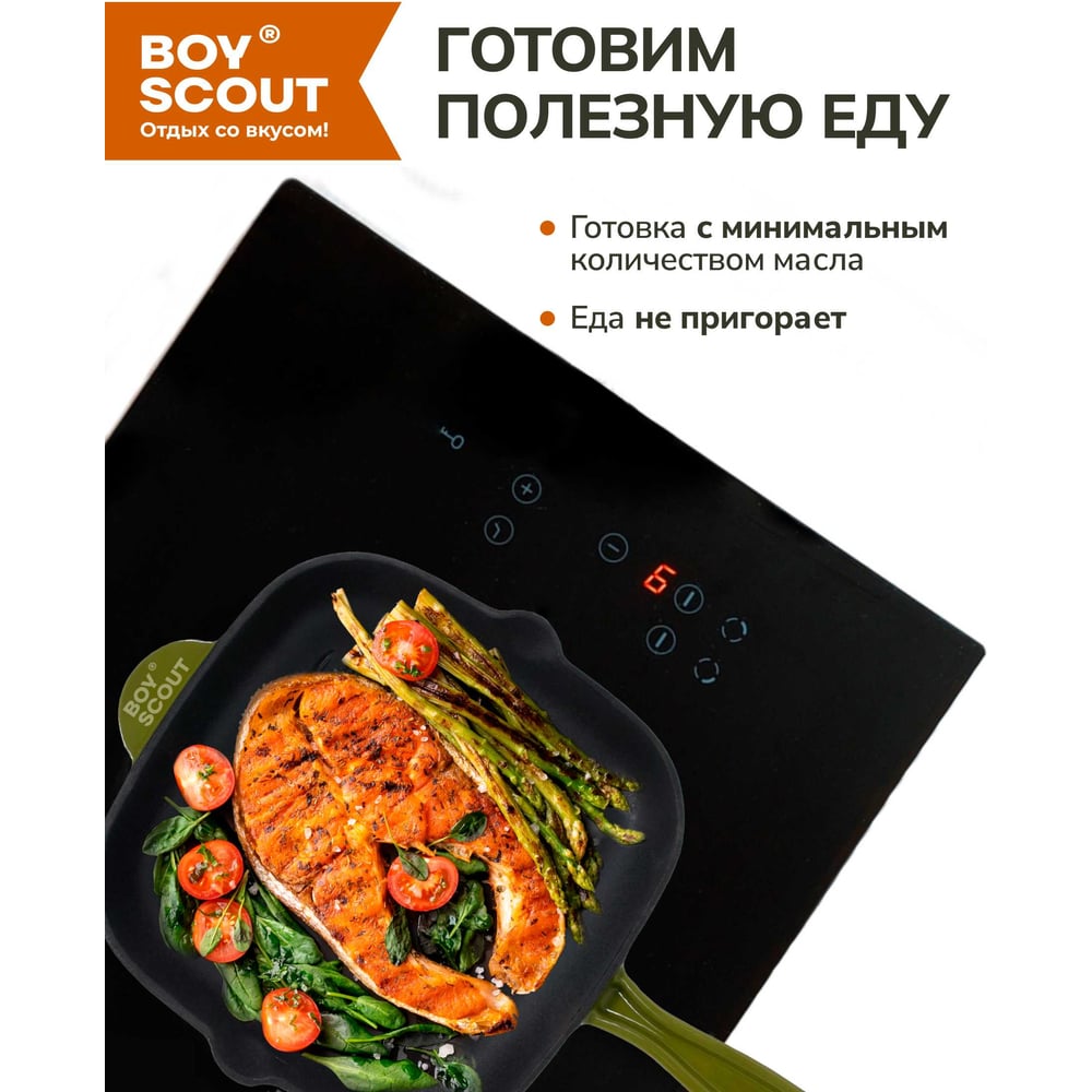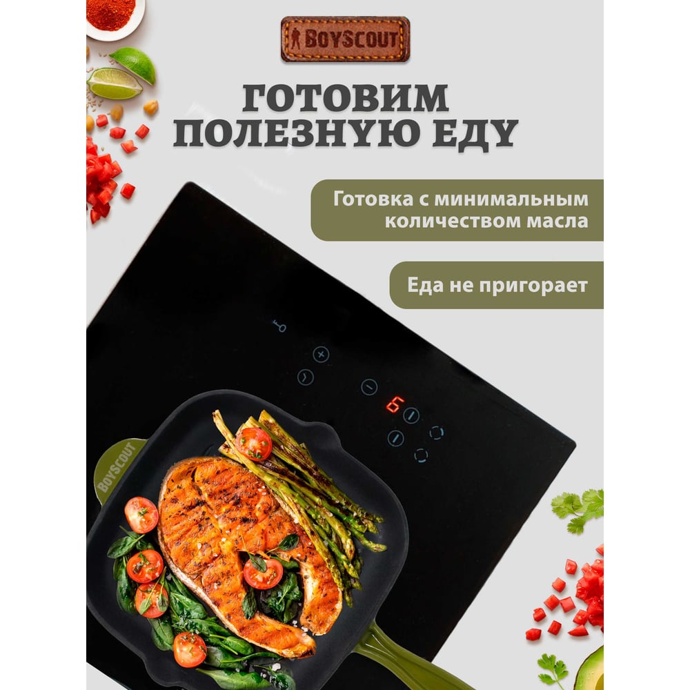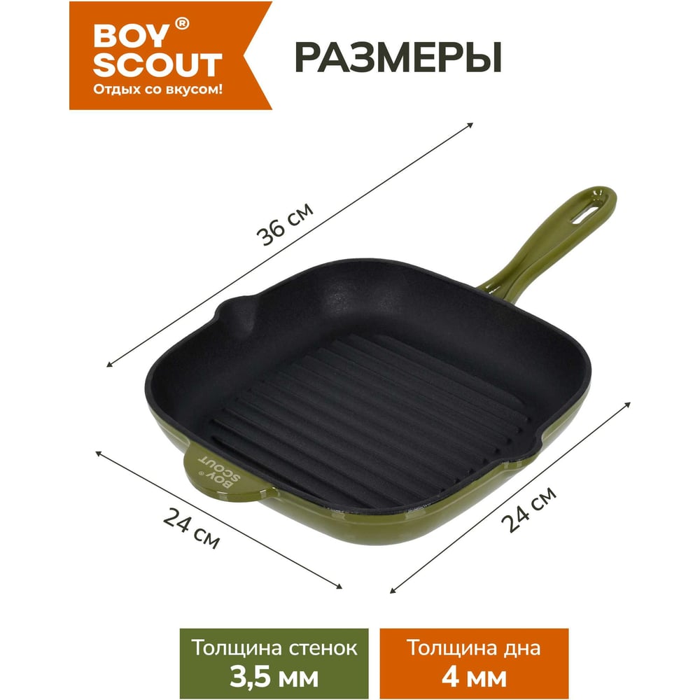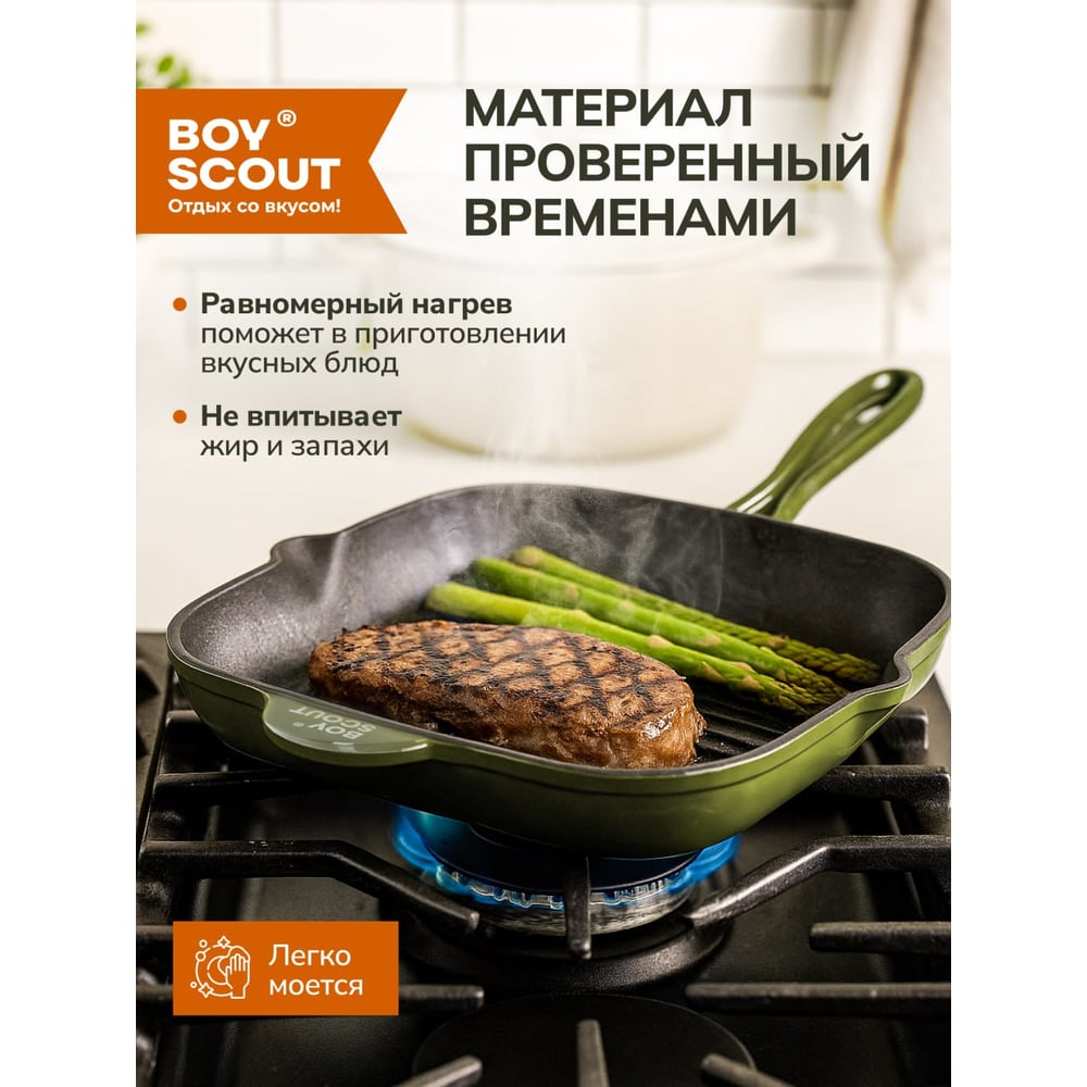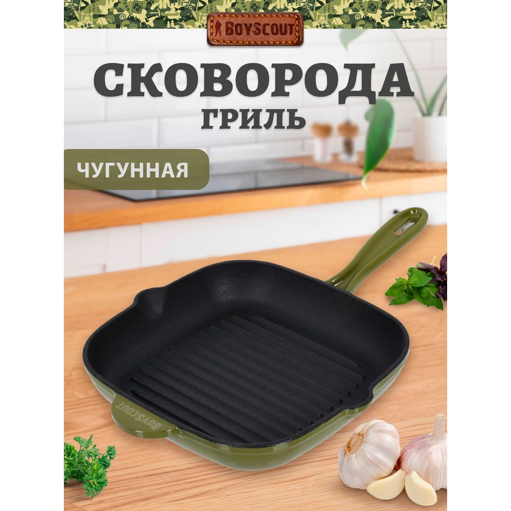 Чугунная эмалированная сковорода - гриль для стейков BOYSCOUT 24x24 см 61592