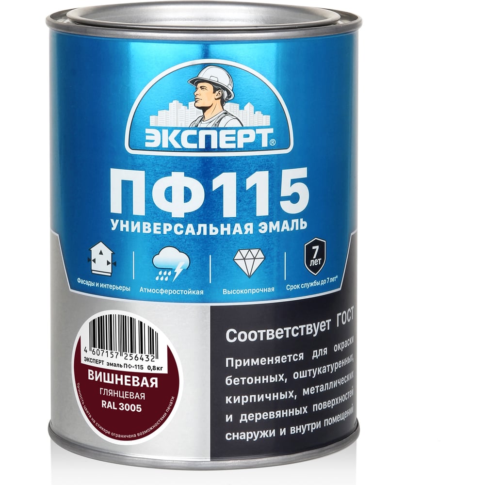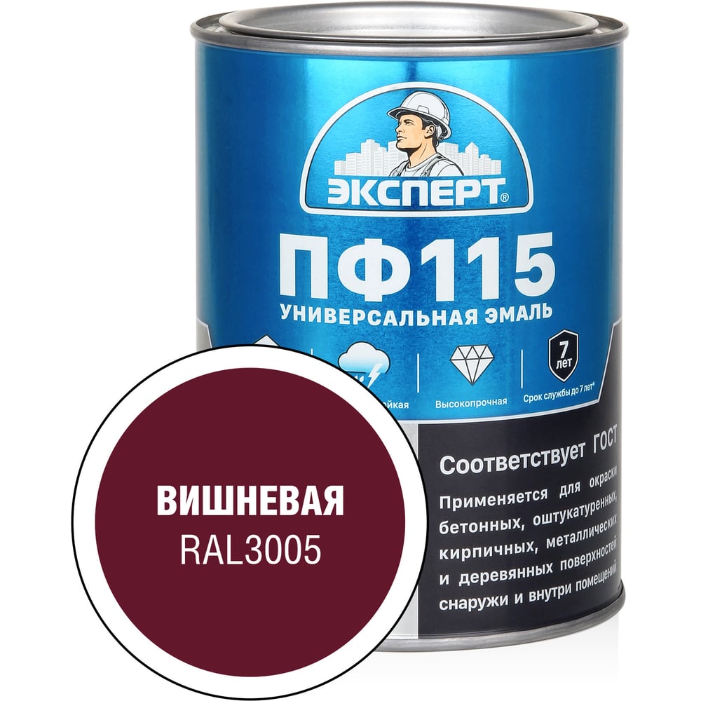 Эмаль ЭКСПЕРТ ПФ-115 глянцевая вишневая RAL 3005 0,8 кг 34065