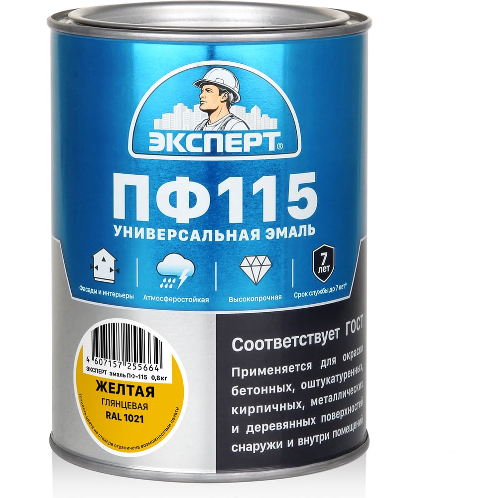 Эмаль ЭКСПЕРТ ПФ-115 глянцевая желтая RAL 1021 0,8 кг 34075