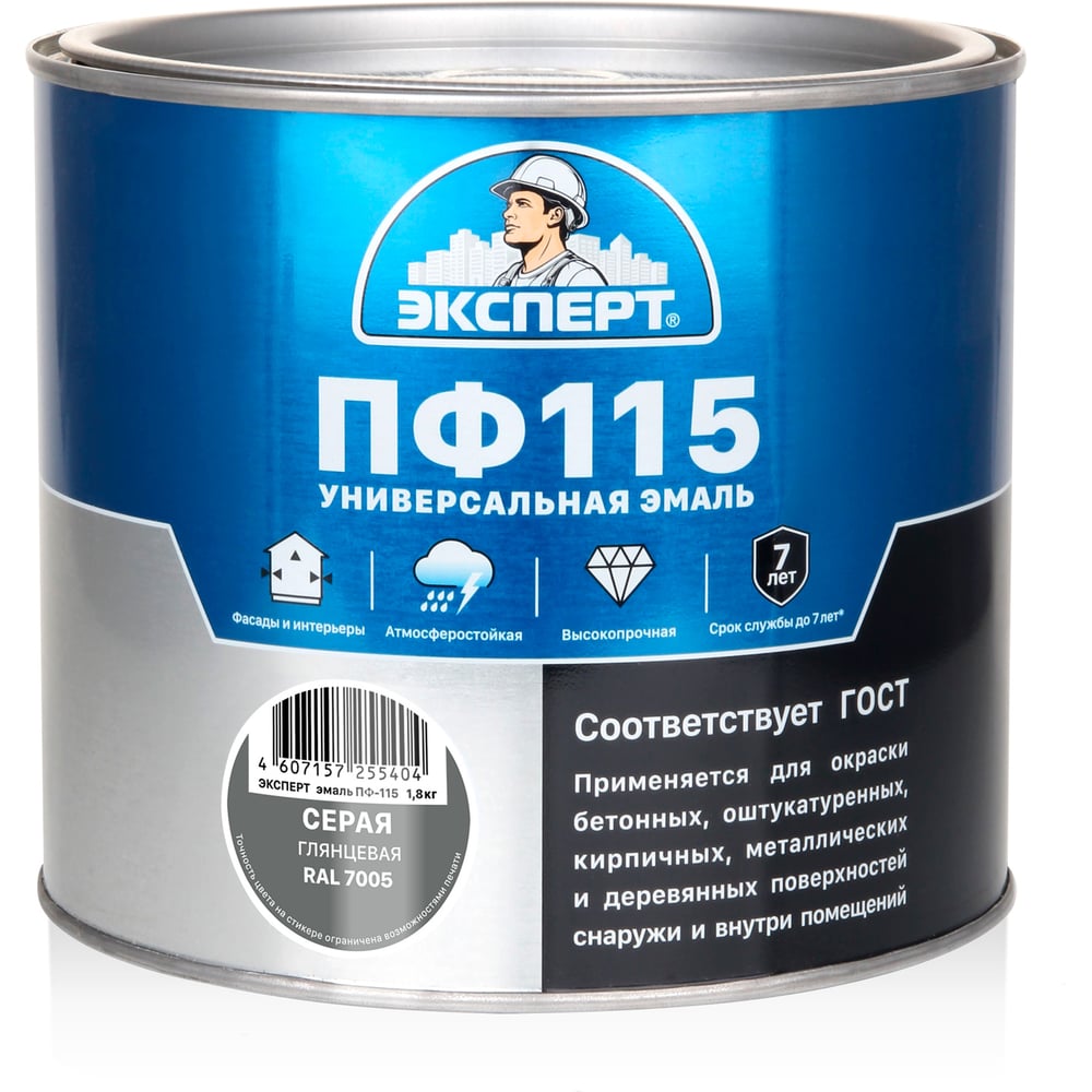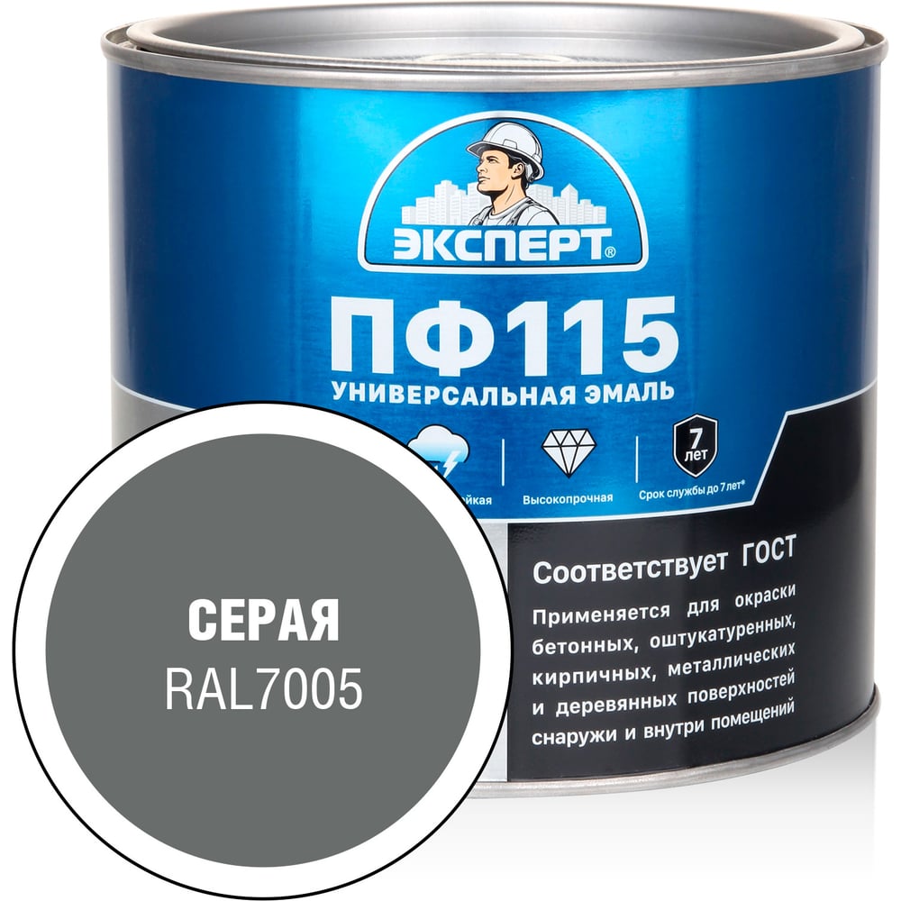 Эмаль ЭКСПЕРТ ПФ-115 глянцевая, серая, RAL 7005 1.8 кг 34117