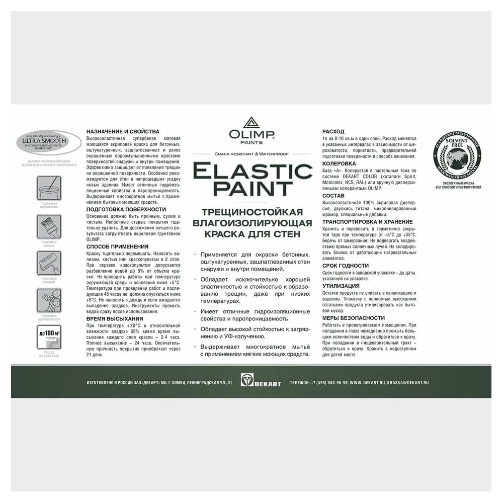| Система колеровки | Dekart Color — каталогам SPIRIT, MONICOLOR, NCS, RAL |