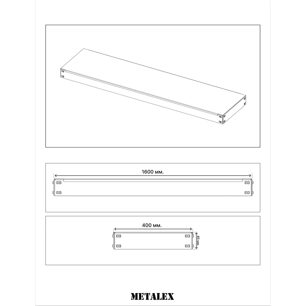 Габариты без упаковки 1600х400х30 мм Высота 30 мм Материал металл Ширина 1600 мм Вид полка Класс товара Бытовой Глубина 400 мм Магнитная нет Max нагрузка на полку 350 кг