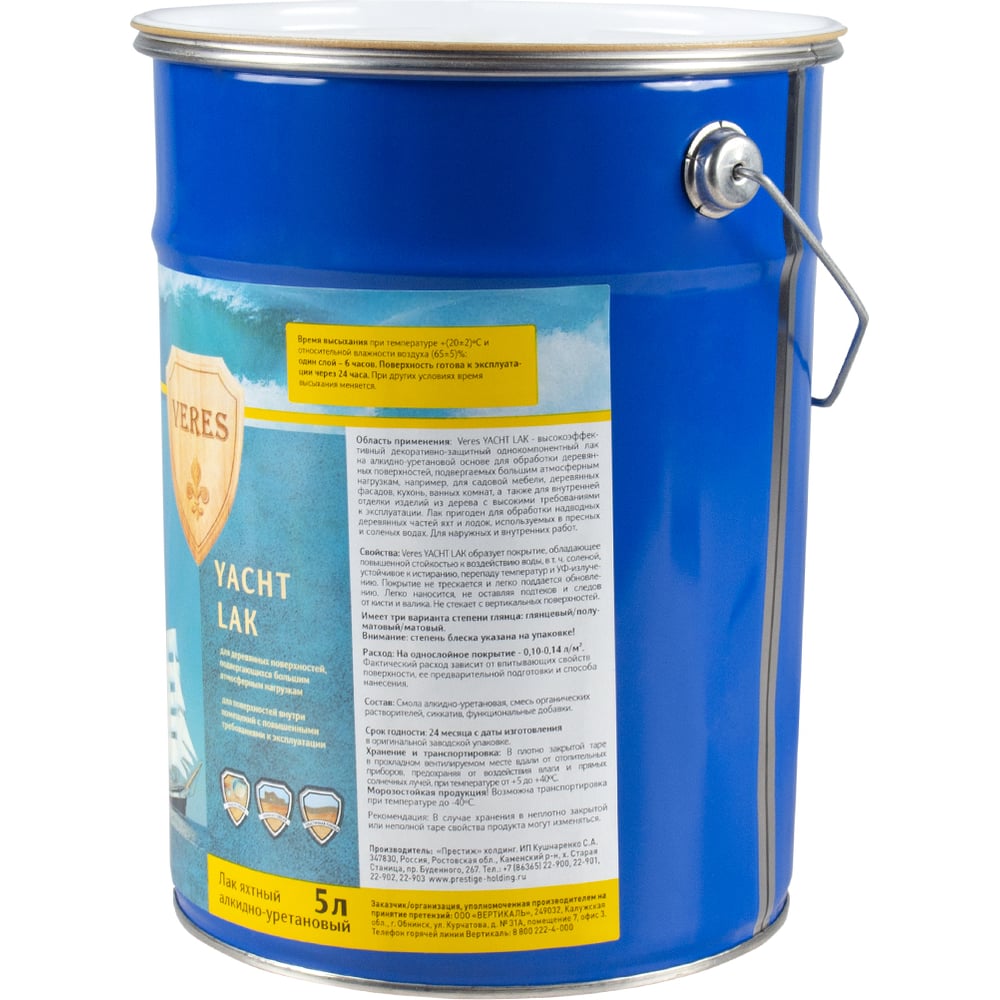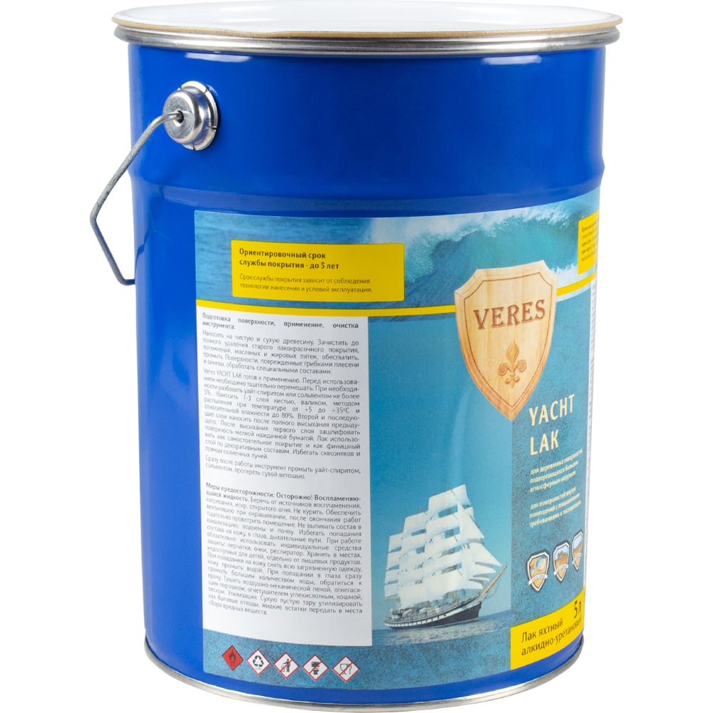 Яхтный лак VERES алкидно-уретановый, полуматовый, 5 л 219818
