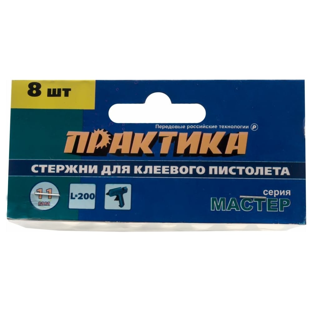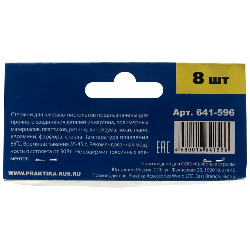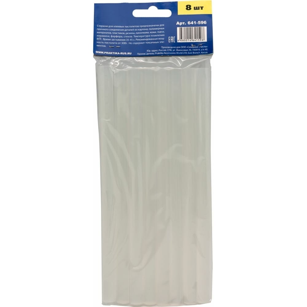 Клей белый, прозрачный (8 шт; 11х200 мм) для клеевого пистолета ПРАКТИКА 641-596
