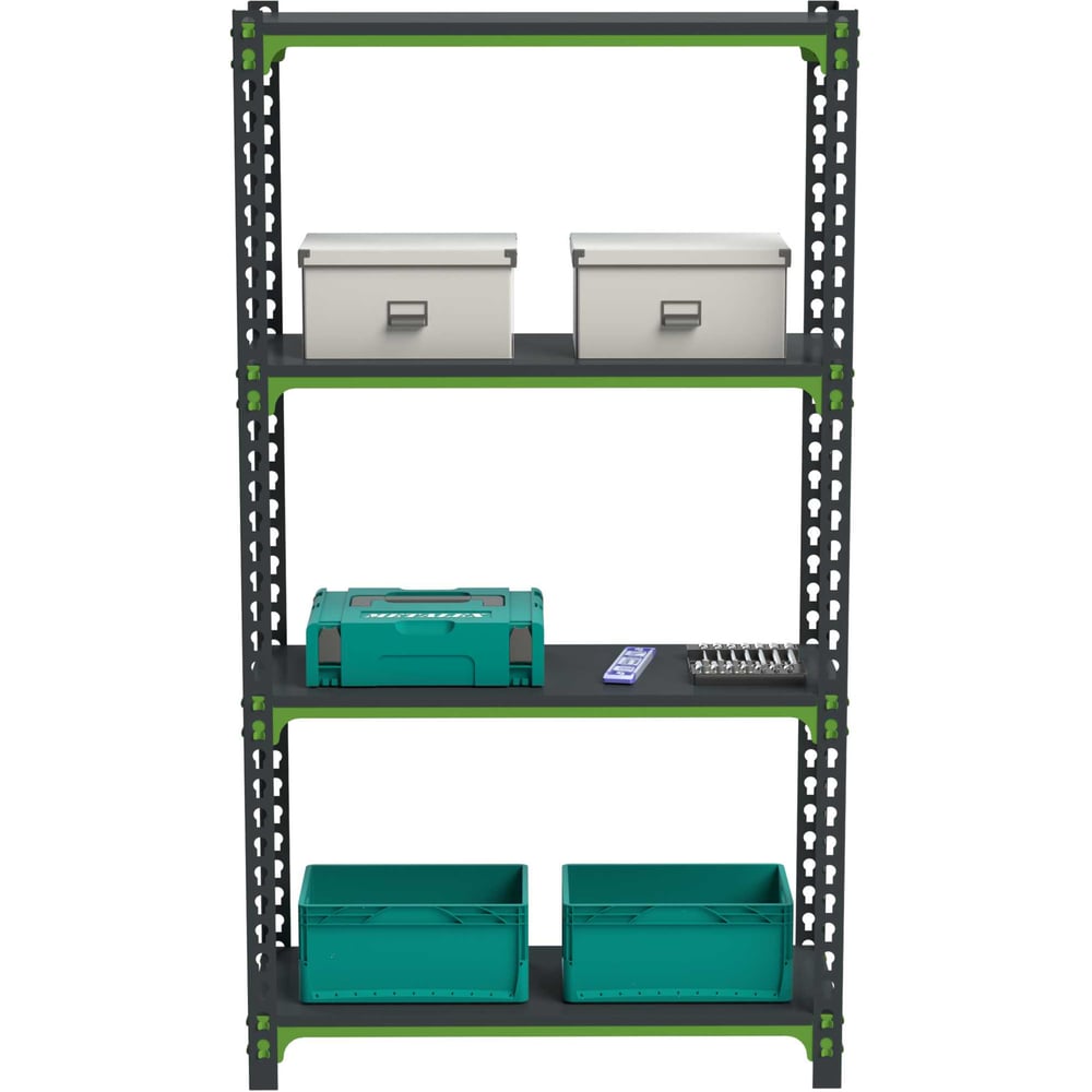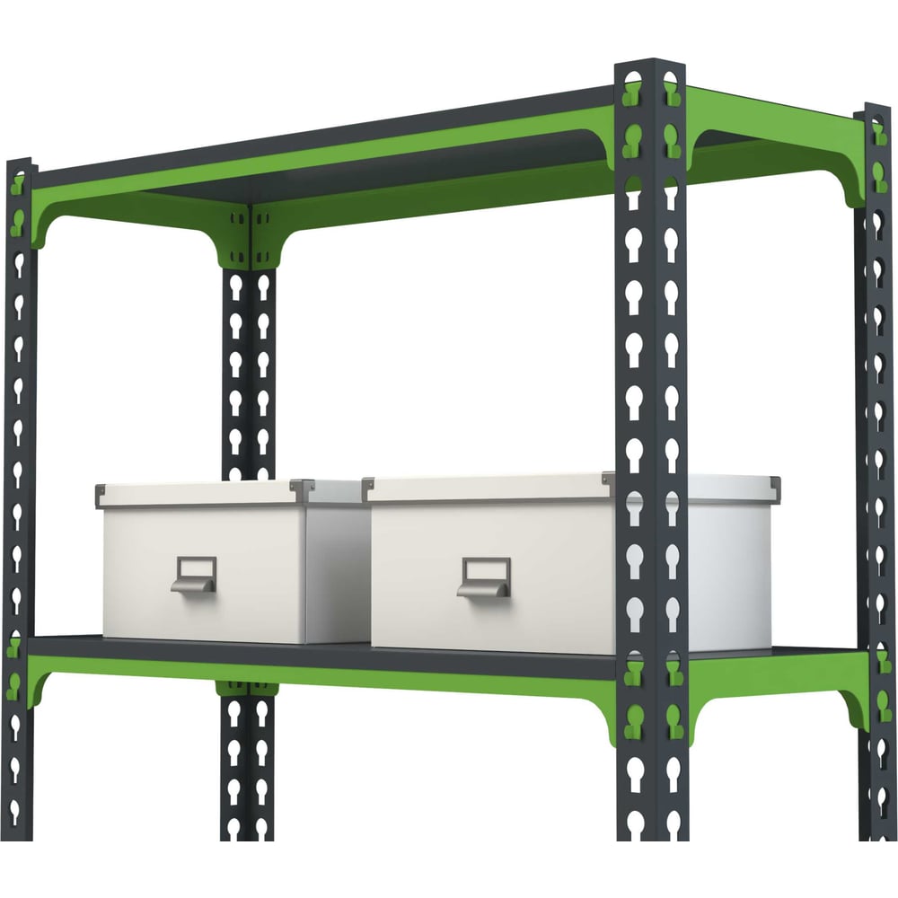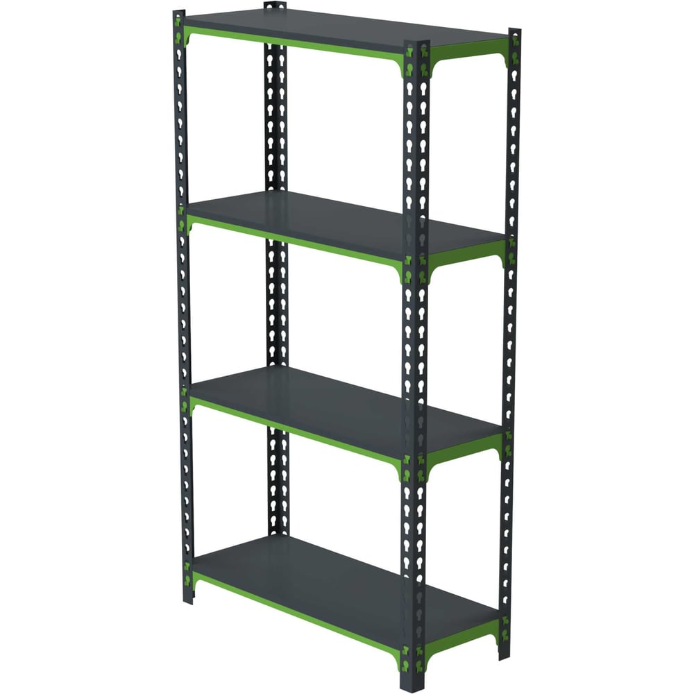 Габариты без упаковки 2000x1000x500 мм Высота 2000 мм Материал сталь Покрытие порошковое Ширина 1000 мм Цвет серый, зеленый Вид стеллаж Класс товара Бытовой Установка напольный Глубина 500 мм Конструкция стационарный Сборные да Max нагрузка на полку 200 кг Кол-во полок/ярусов 4 шт Шаг регулирования высоты полки 50 мм Вес стеллажа 20.5 кг Безболтовые да