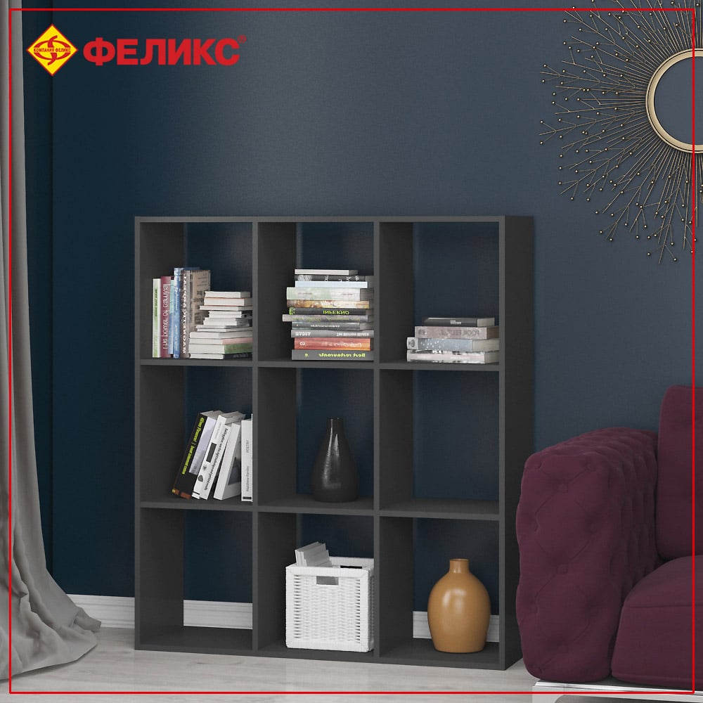 Стеллаж ФЕЛИКС 9-ти секционный антрацит ПК-ОБИ-СЖ124Х108-В1-297