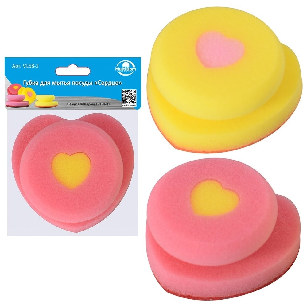 Губка для мытья посуды МУЛЬТИДОМ Сердце VL58-2