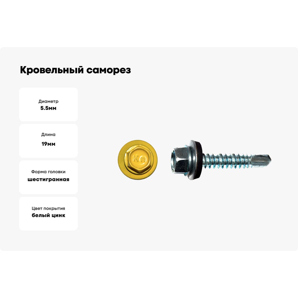 Кровельный саморез КРЕП-КОМП 5,5x19, RAL1018, жёлтый, 250 шт. ск55191018кф
