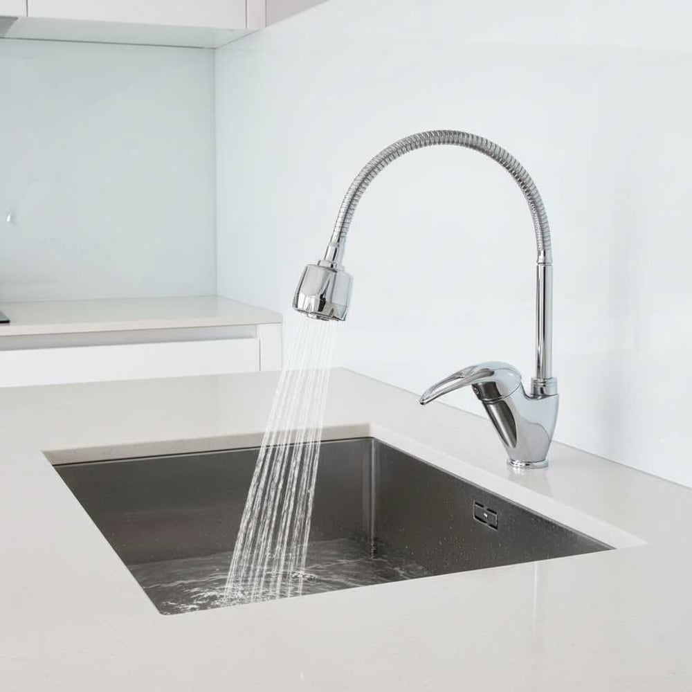 Смеситель для кухни FASHUN хром ф40 - гайка, гиб. излив/2 режима, латунь A4303