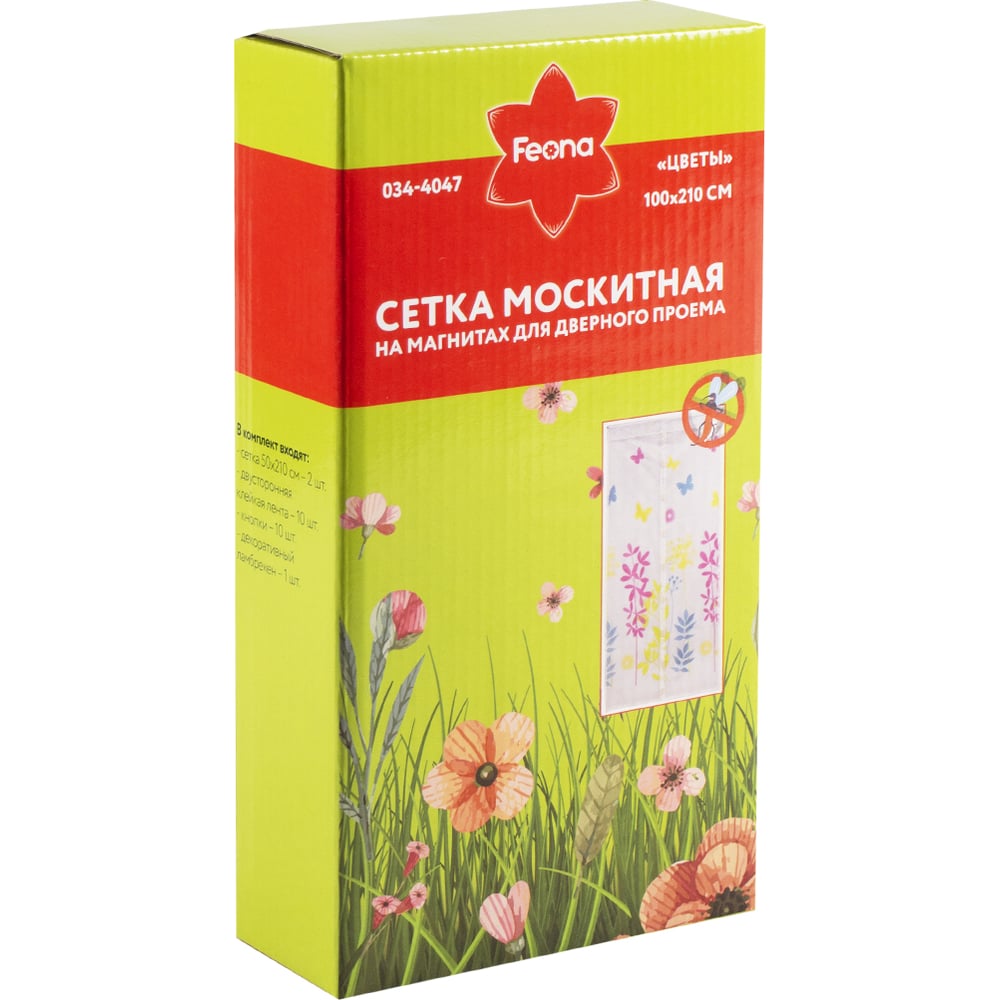 Москитная сетка на магнитах FEONA 1x2.1 м, бежевая, дизайн цветы 034-4047 224821