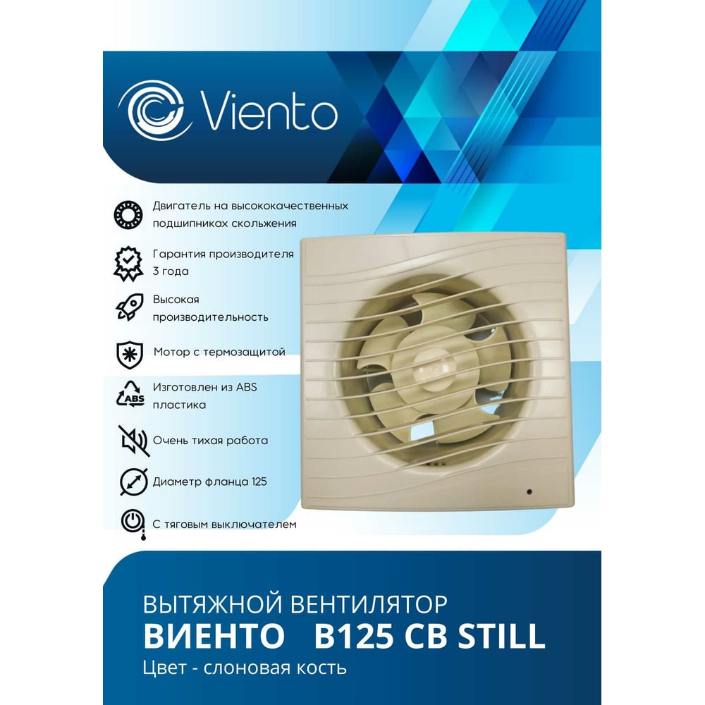 Осевой вытяжной вентилятор ВИЕНТО тяговый выключатель В125СВ STILL ivory