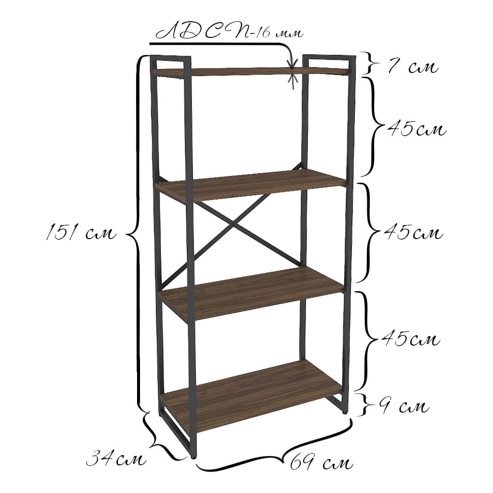 Стеллаж Металл-Завод GUTTA 151x69x34x4 коричневый/черный GS15169344B2