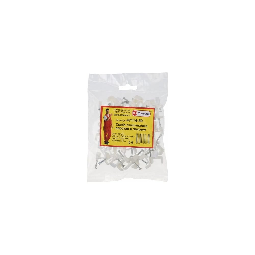 Плоская скоба Экопласт 11x8x14 пластик, размер гвоздя 2,35x25 мм, 50 шт. 47114-50