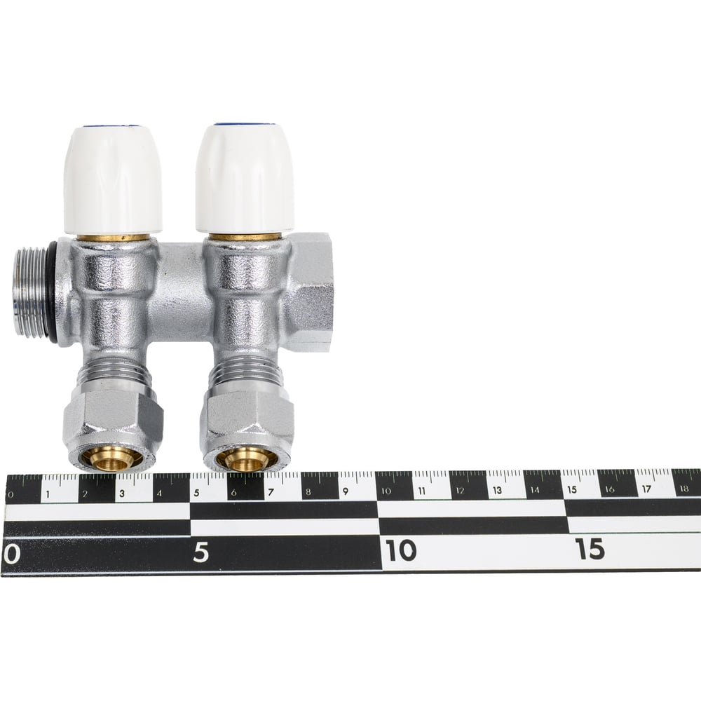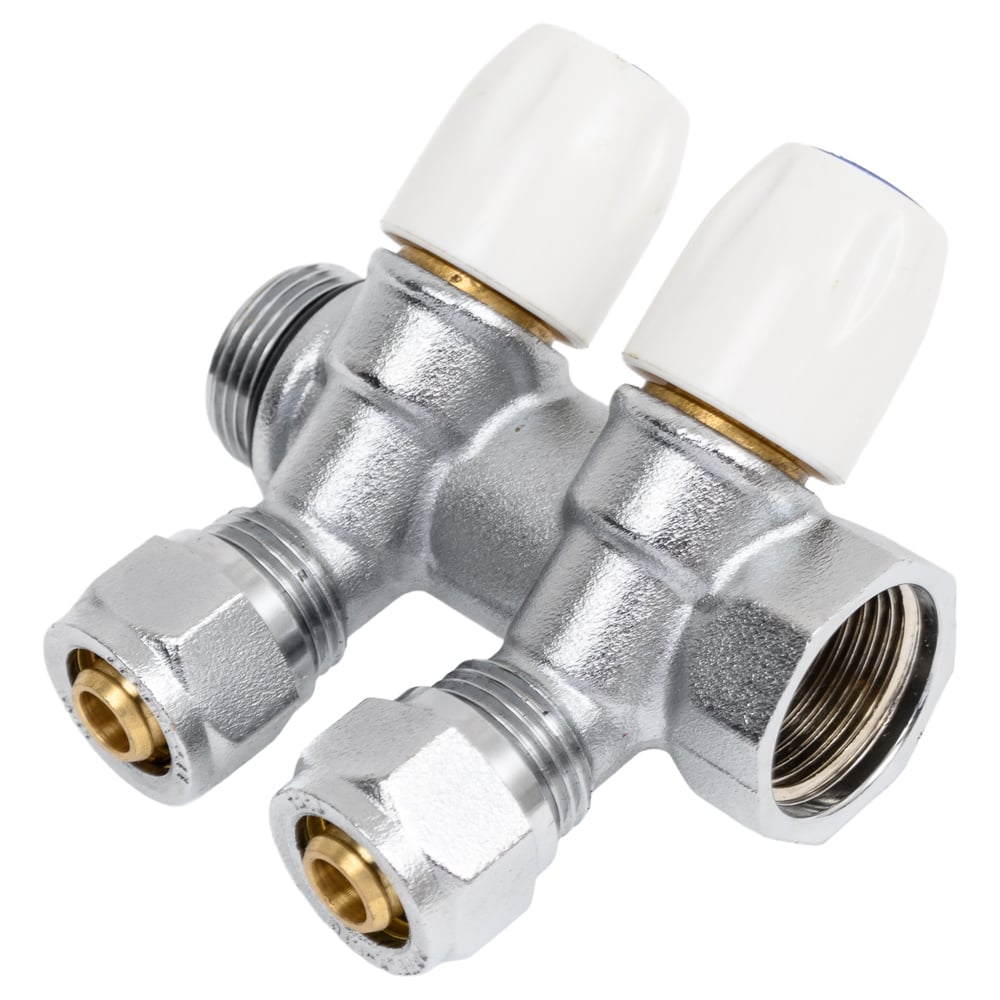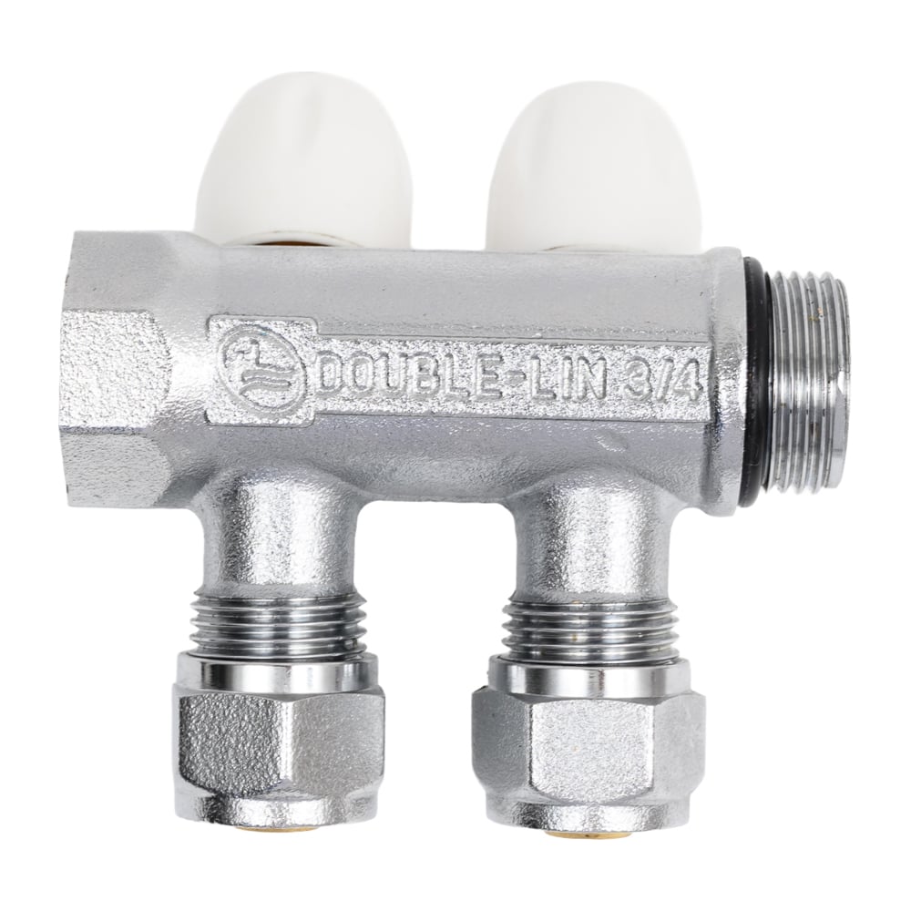 Коллектор DOUBLE-LIN латунь, с регулируемыми клапанами и евроконусом С 3/4", 2 выхода 1/2" LL9036 (3/4"-1/2"х2) CW