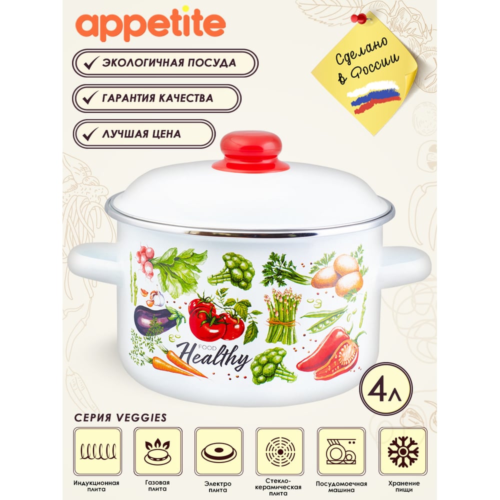 Цилиндрическая эмалированная кастрюля appetite Veggies 4 л 1RD201M Veggies