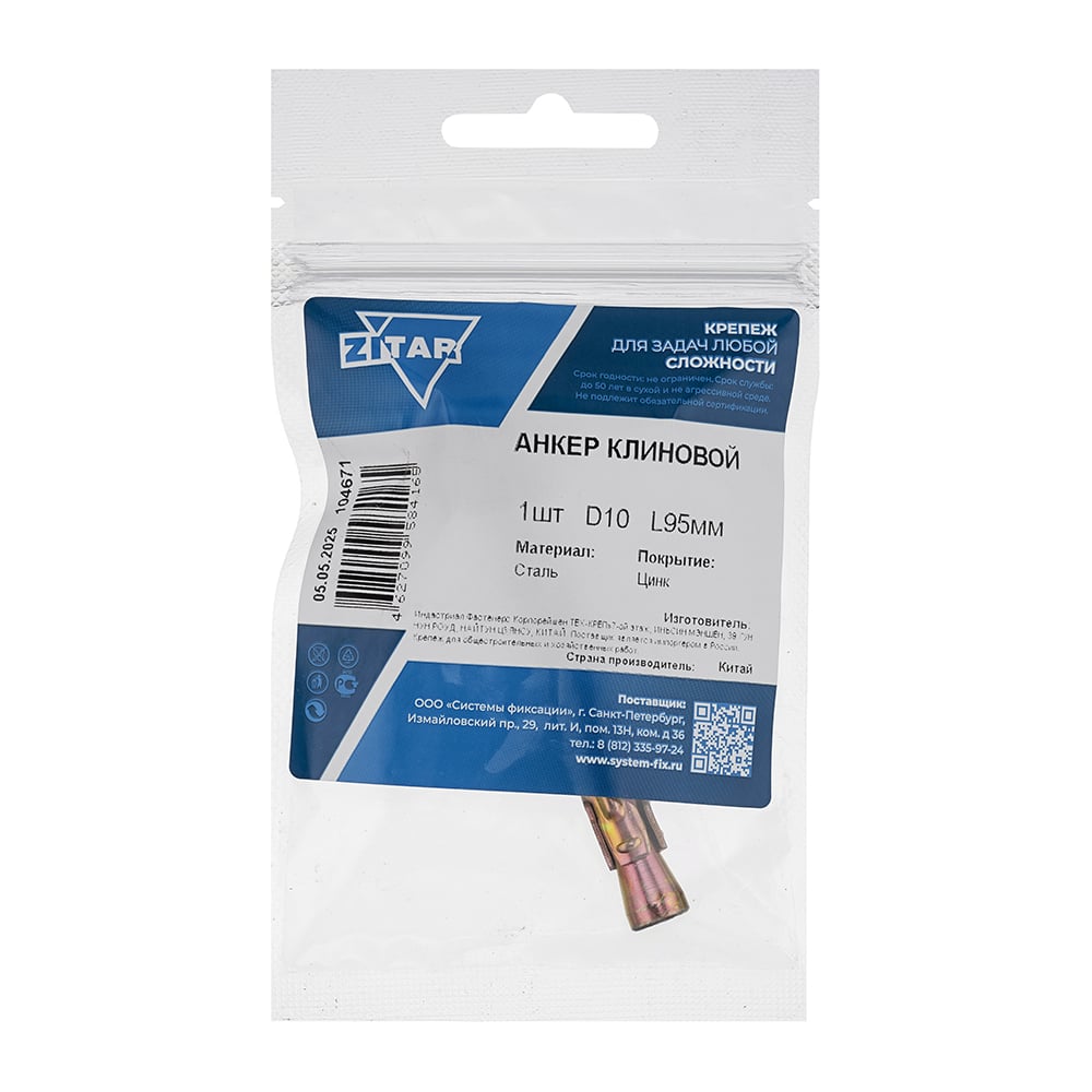 Клиновой анкер 10x95 мм, 1 шт, пакет Zitar 104671