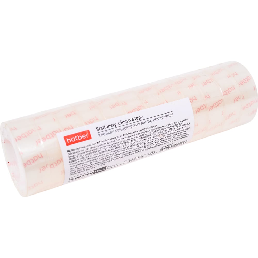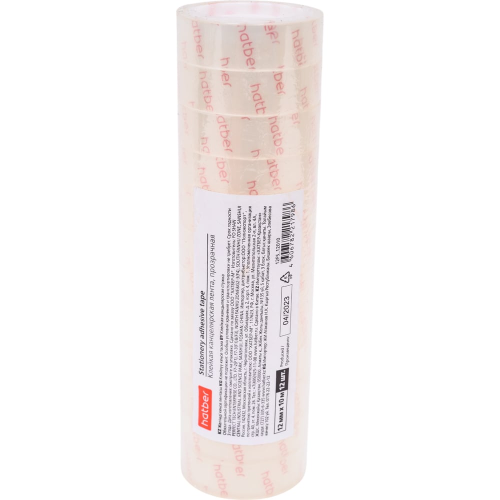 Клейкая канцелярская лента Hatber 12ммх10м (без штрихкода), 12 шт 043442