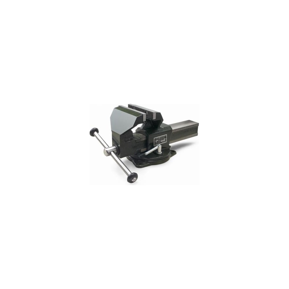 Габариты без упаковки 345х190х165 мм Тип слесарные Класс товара Бытовой Вес нетто 11.4 кг Материал корпуса чугун Материал губок сталь Функция поворота есть Ширина губок 100 мм Рабочий ход 140 мм Способ крепления винты/болты Наковальня есть