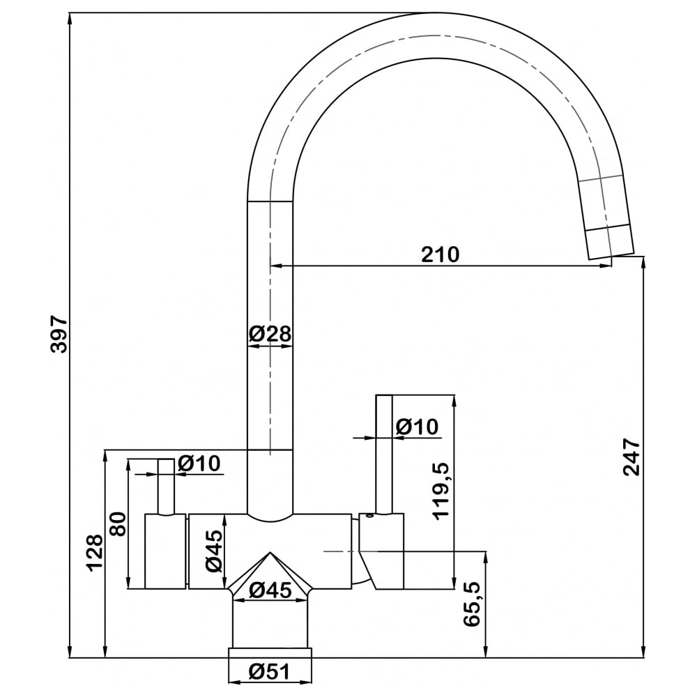 | Высота смесителя | 397 мм |