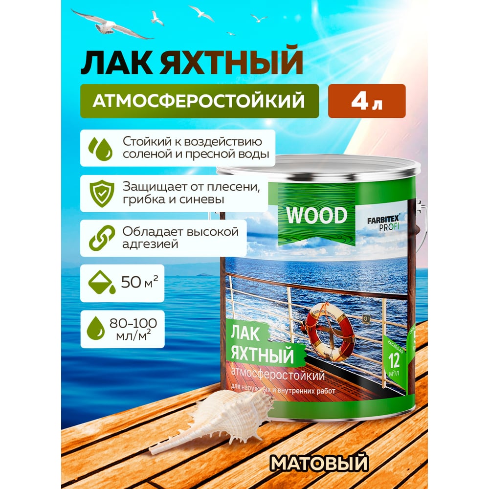 Уралкидный яхтный лак FARBITEX (атмосферостойкий; матовый; 4 л) 4300006081