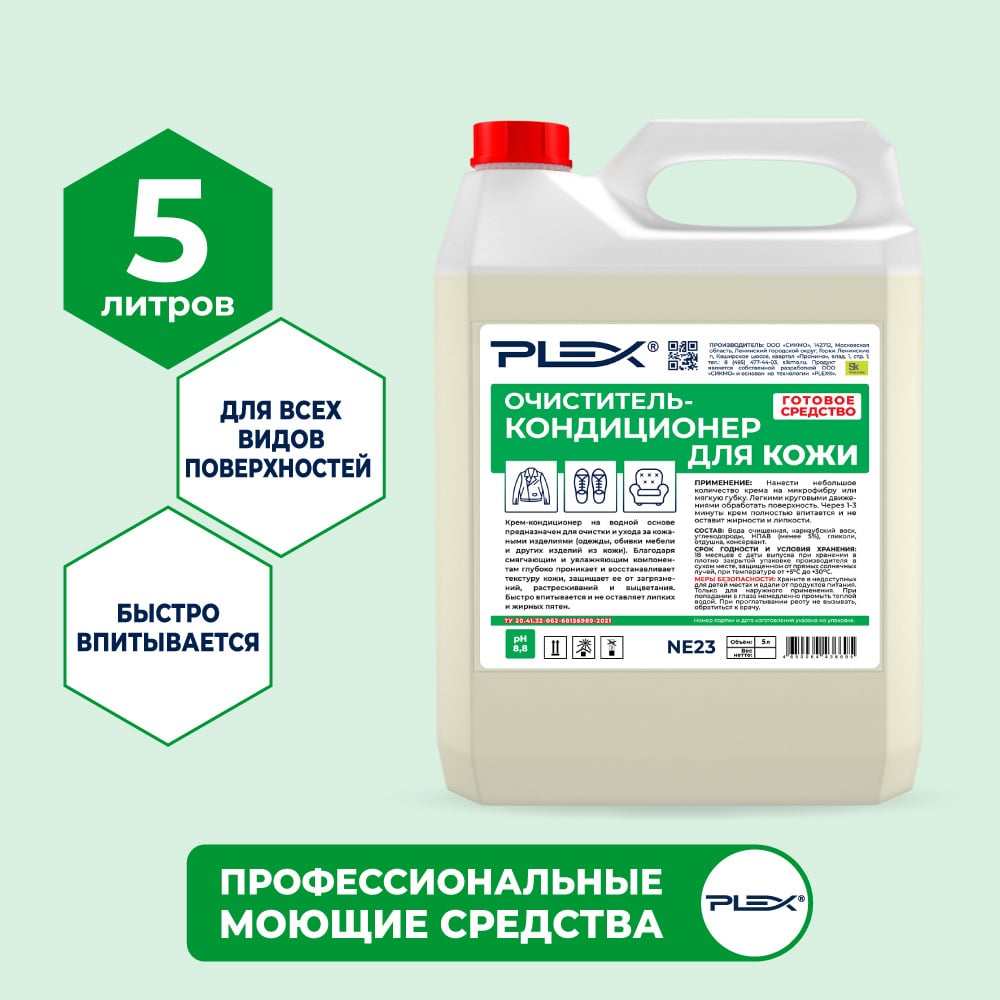 Очиститель-кондиционер для кожи PLEX крем 5 л УТ000005655