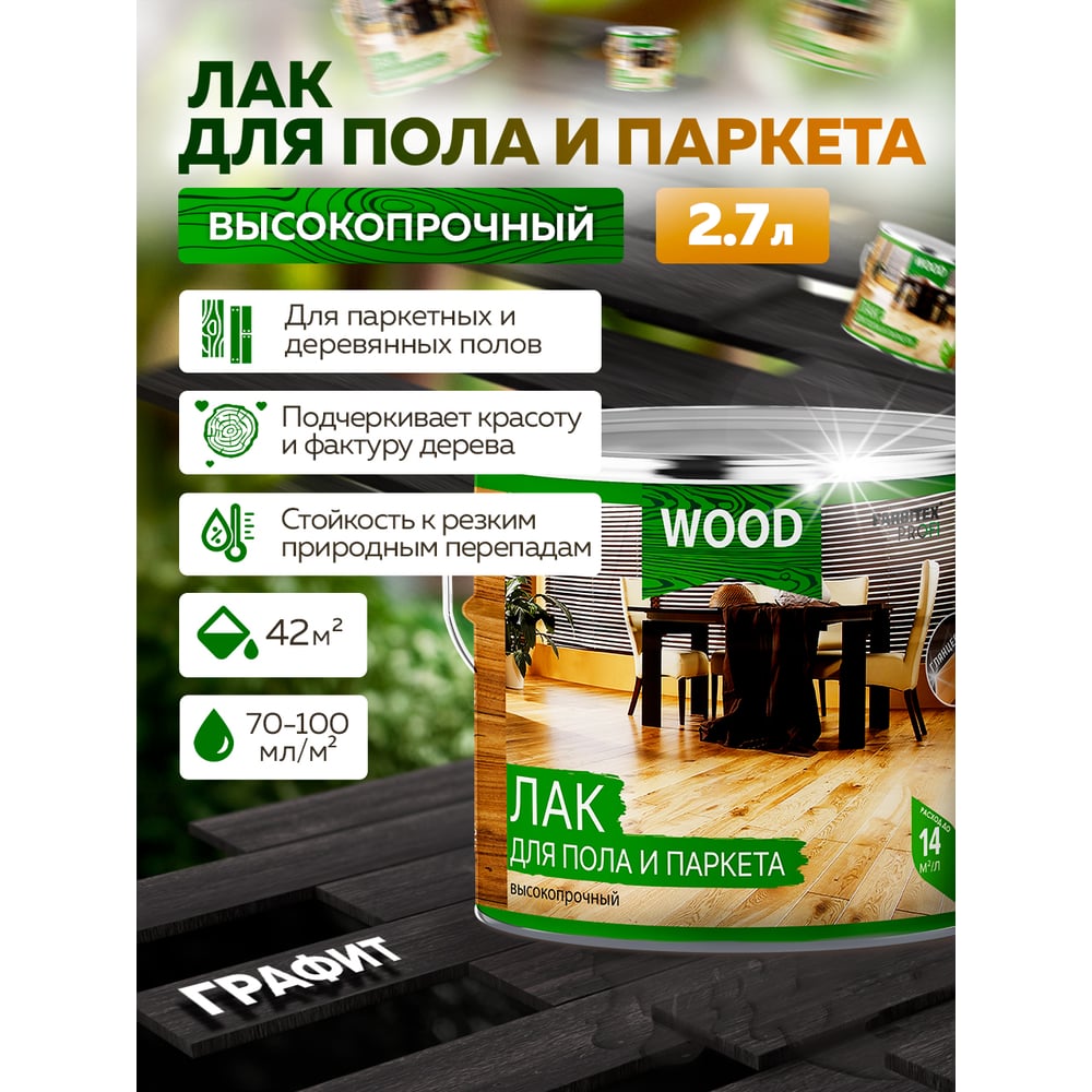 Лак для пола и паркета FARBITEX (высокопрочный; графит; 2,7 л) 4300009381