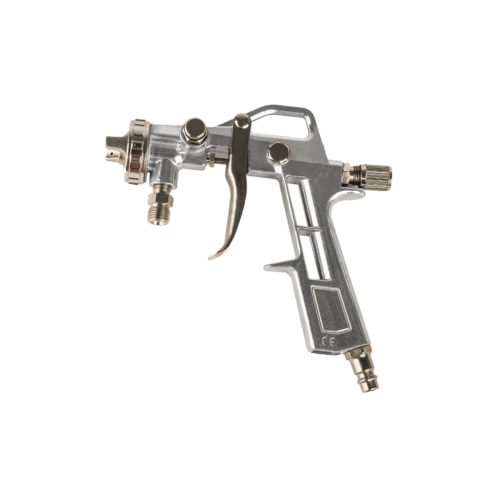 В наборе пистолет для накачки шин, краскораспылитель, спиральный шланг, продувочный пистолет, промывочный пистолет