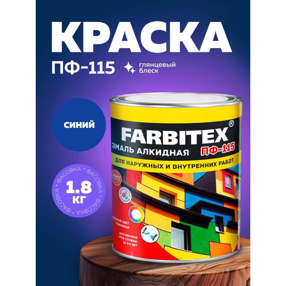 Алкидная эмаль FARBITEX ПФ-115 (синий; 1.8 кг) 4300006031