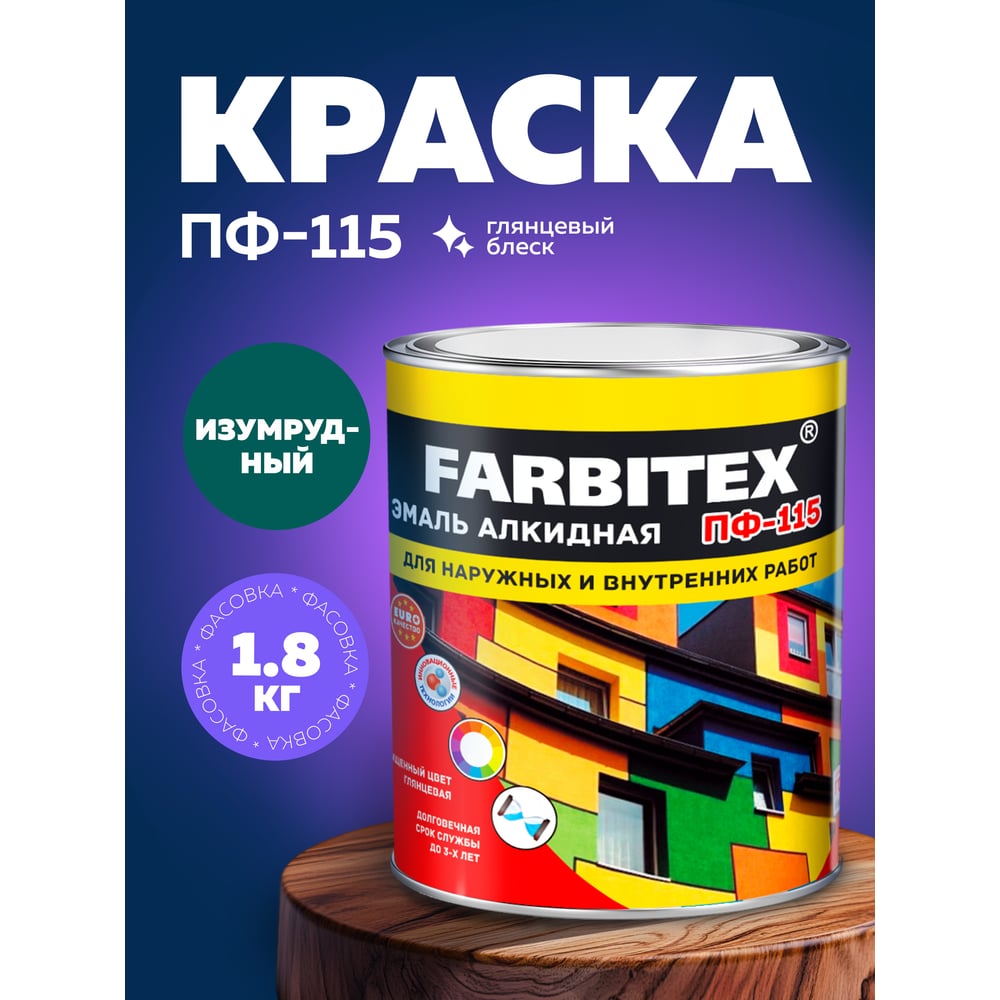 Алкидная эмаль FARBITEX ПФ-115 (изумрудный; 1.8 кг) 4300006022