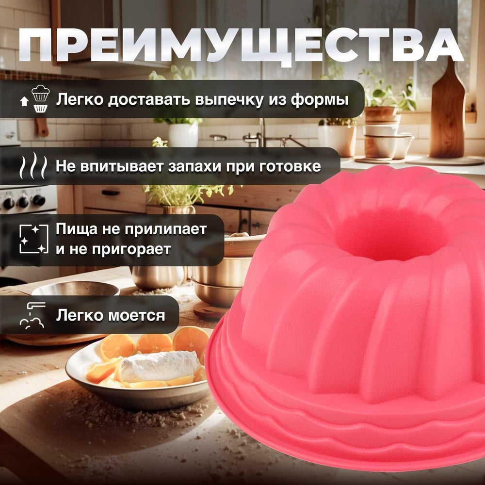 Габариты без упаковки 240x240x105 мм Длина 240 мм Материал силикон Ширина 240 мм Цвет розовый Форма круглая Количество в комплекте 1 шт Назначение для кексов Набор нет Глубина 105 мм Ручки для переноса нет Разъемная нет
