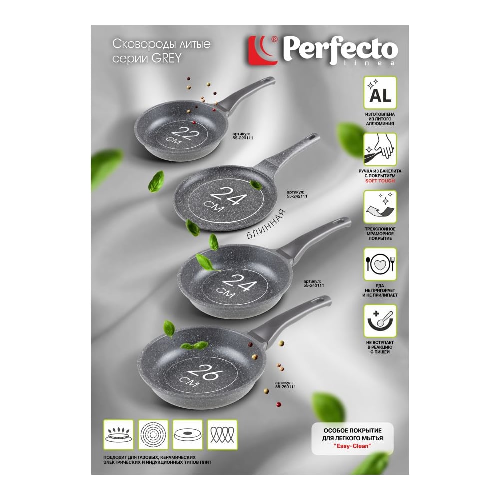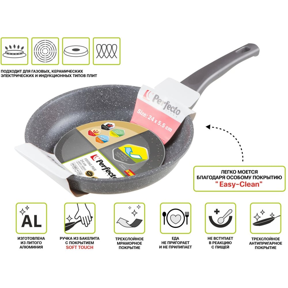 Алюминиевая сковорода PERFECTO LINEA Grey 55-240111