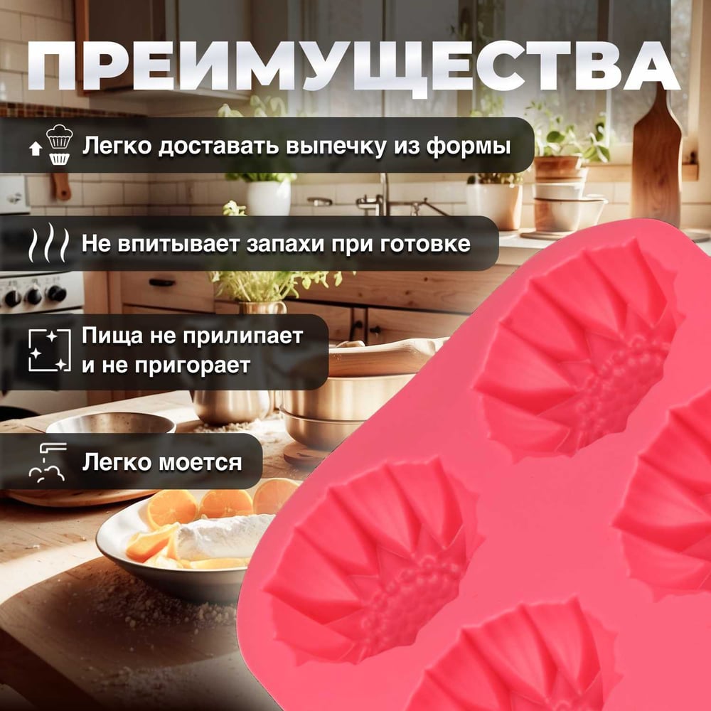Силиконовая форма для выпечки PERFECTO LINEA, прямоугольная, на 6 кексов 27.5x18x3 см розовый 20-000619